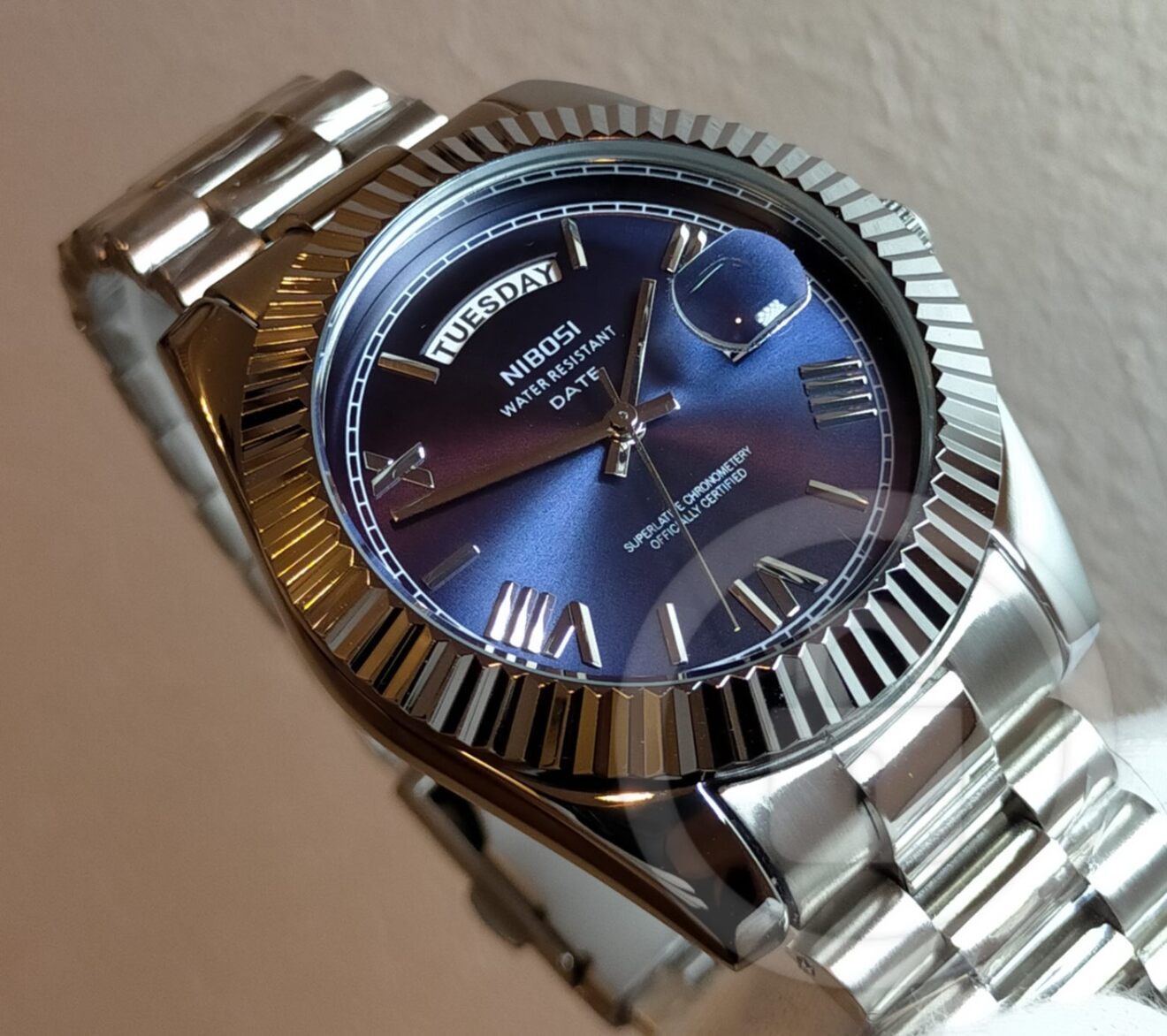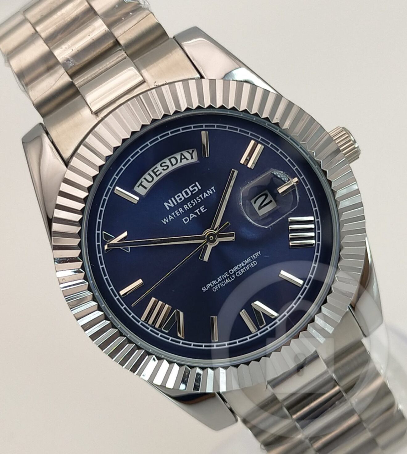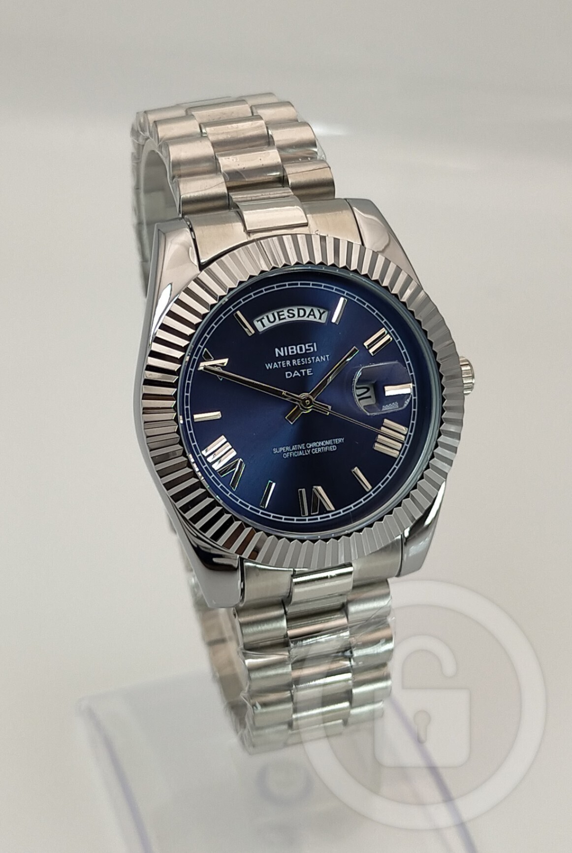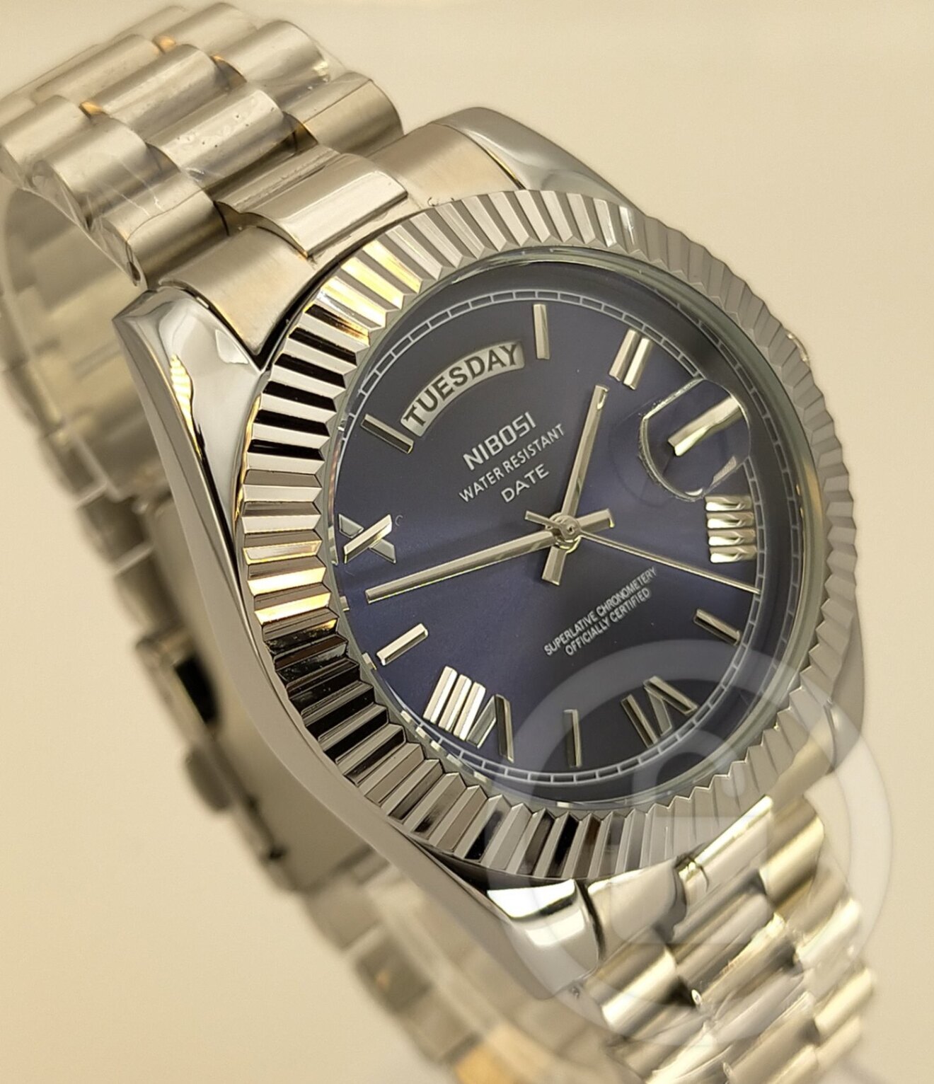 全ては「美しい」のひと言に凝縮【デイデイト機能搭載/新品】サファイアブルー文字盤 日付/曜日W表示