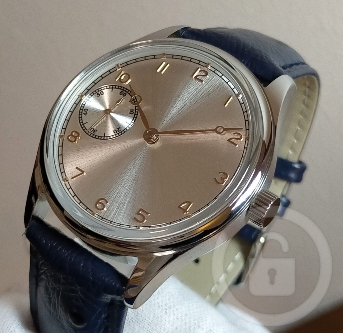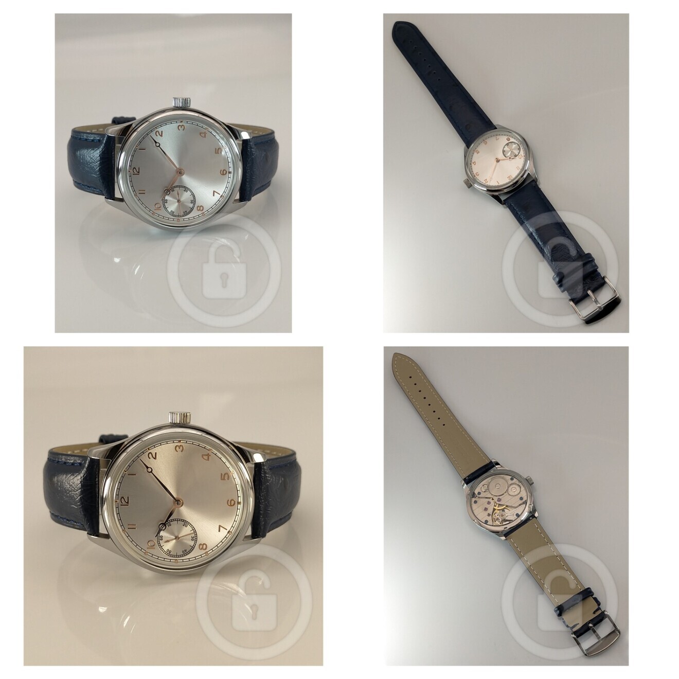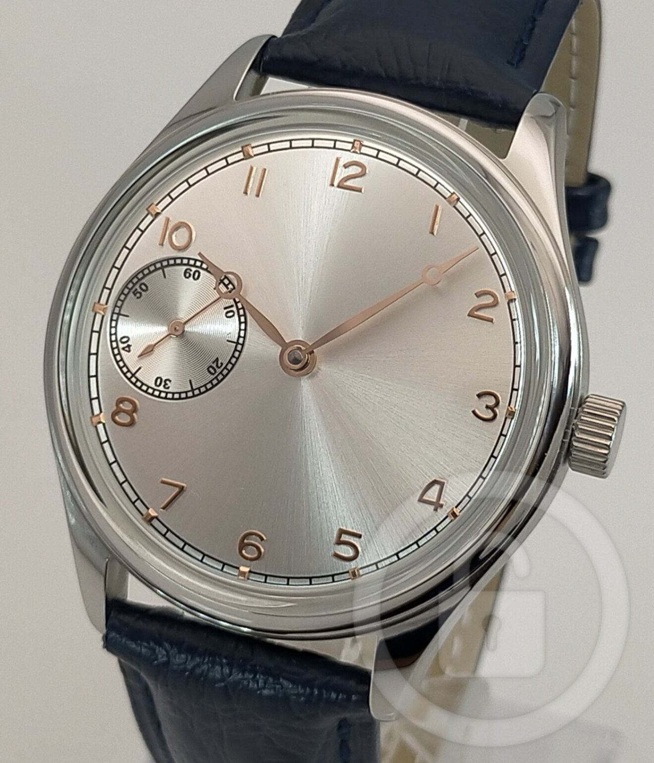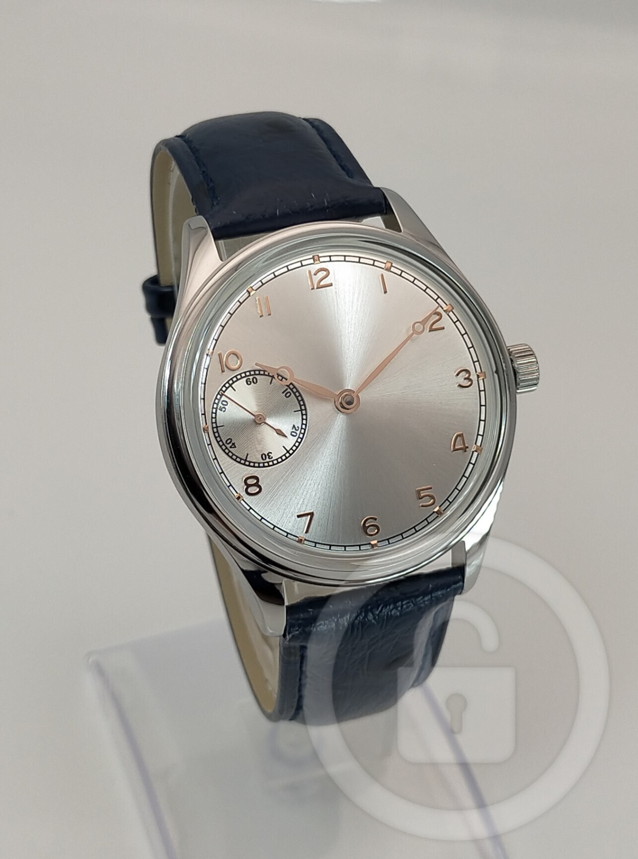 無駄を削ぎ落としたシンプルな佇まいの中に、ドーム型風防とスモールセコンドを備え、コアにはケースバック越しに鑑賞できる美しいシーガル(カモメ)ムーブメントを搭載。