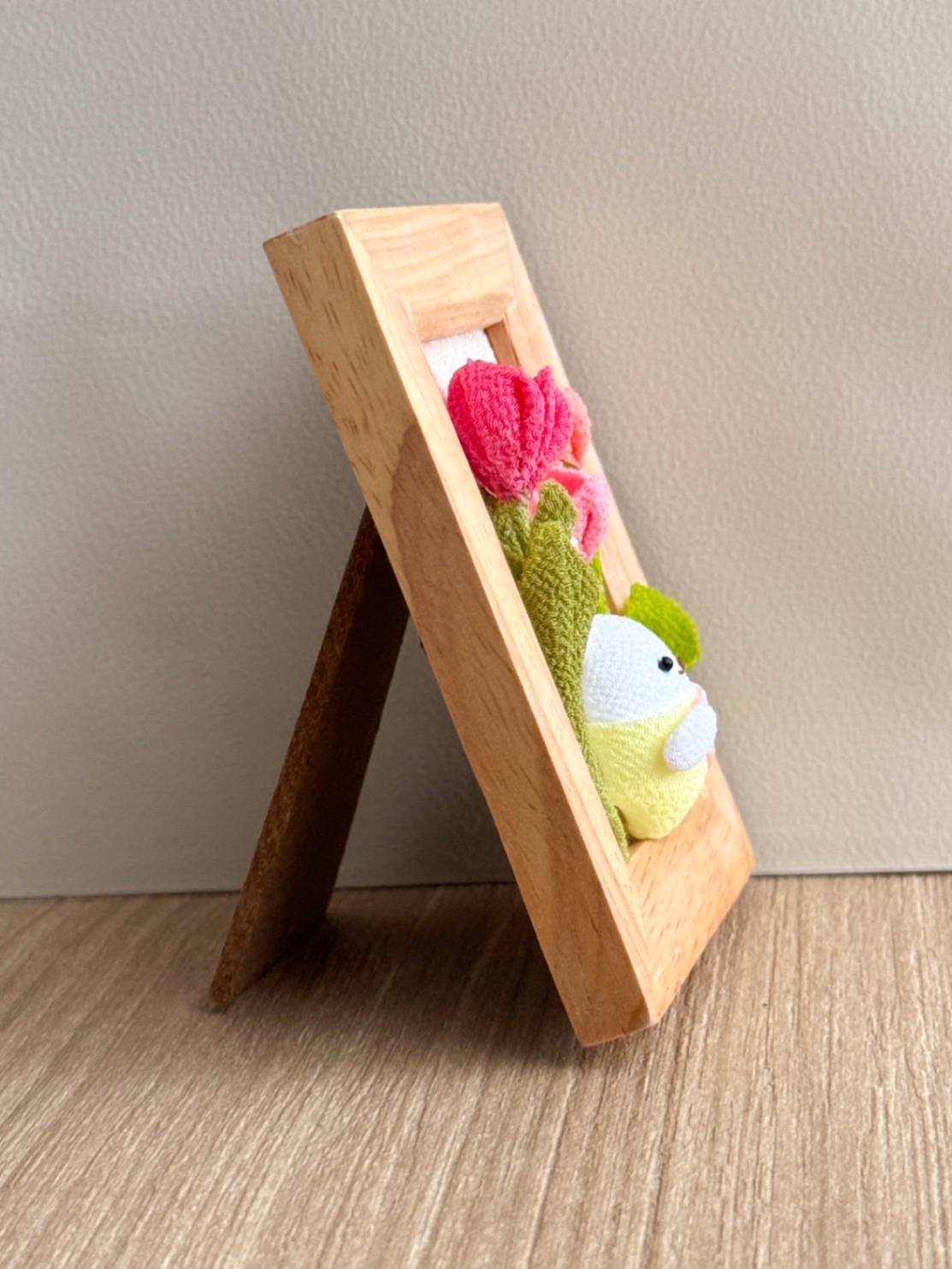 【ハンドメイド】うさぎと3本のチューリップのちりめんフォトフレーム