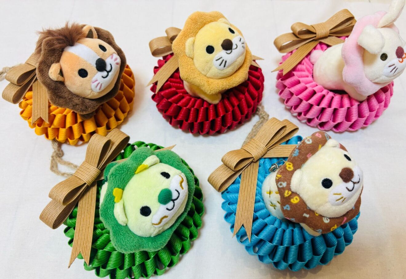🌈学長ぬいぐるみ🦁専用『5つの力』カラー2wayリース&座布団 コンプリートセット🌈リボン付き