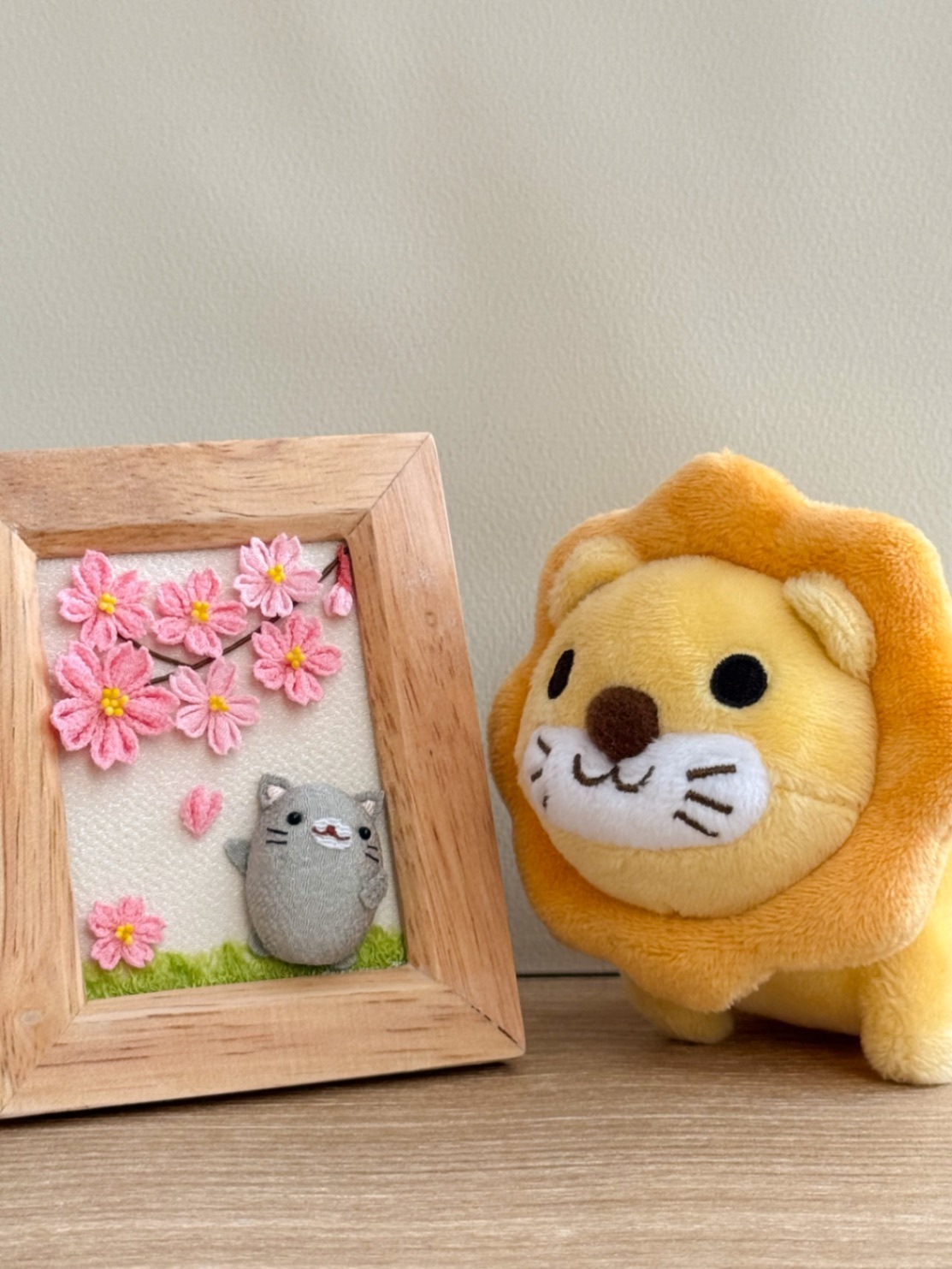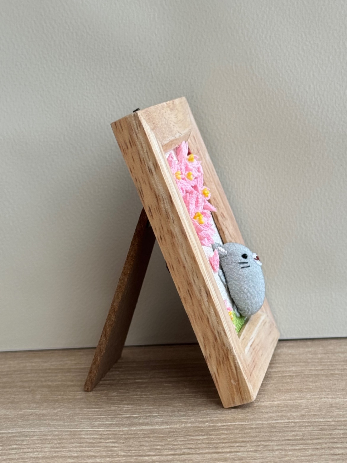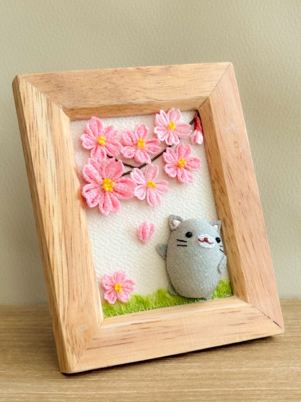 【ハンドメイド】桜とねこのちりめんミニフォトフレーム