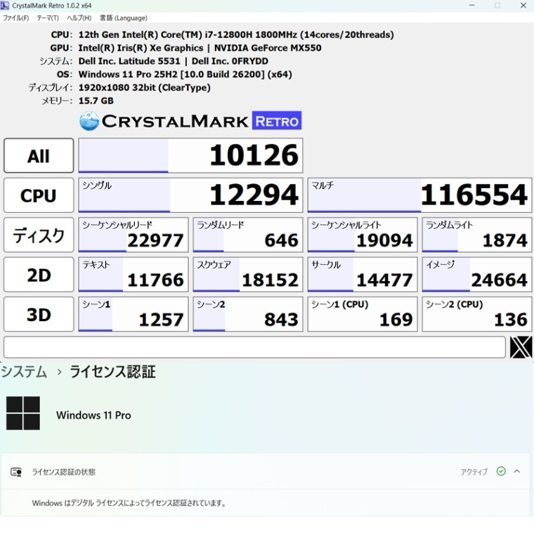 ☘️CPU:インテル Core i7-12800H 1.8GHz(最大4.8GHz)14コア20スレッド