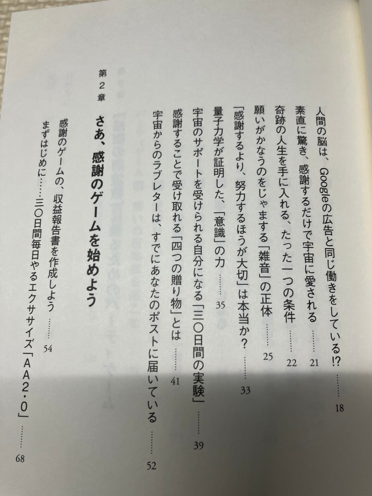 ・実際に感謝の実験を30日間行うことで、思考が現実化することを体感でき、ポジティブな変化や「良い習慣」が身につくことを紹介し、科学的かつスピリチュアルな視点で解説している。