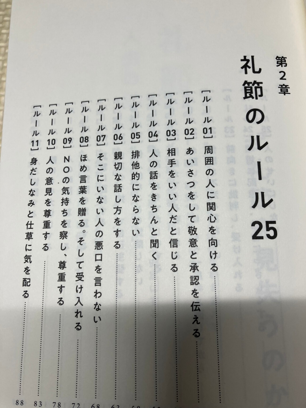 ・挨拶・傾聴・悪口を言わない・時間や空間を尊重する・謝る・NOを尊重するなど、日常の具体的な場面で使える「礼儀正しさの25の原則」を挙げ、なぜそれが自分と相手双方を守ることになるのかを解説している。