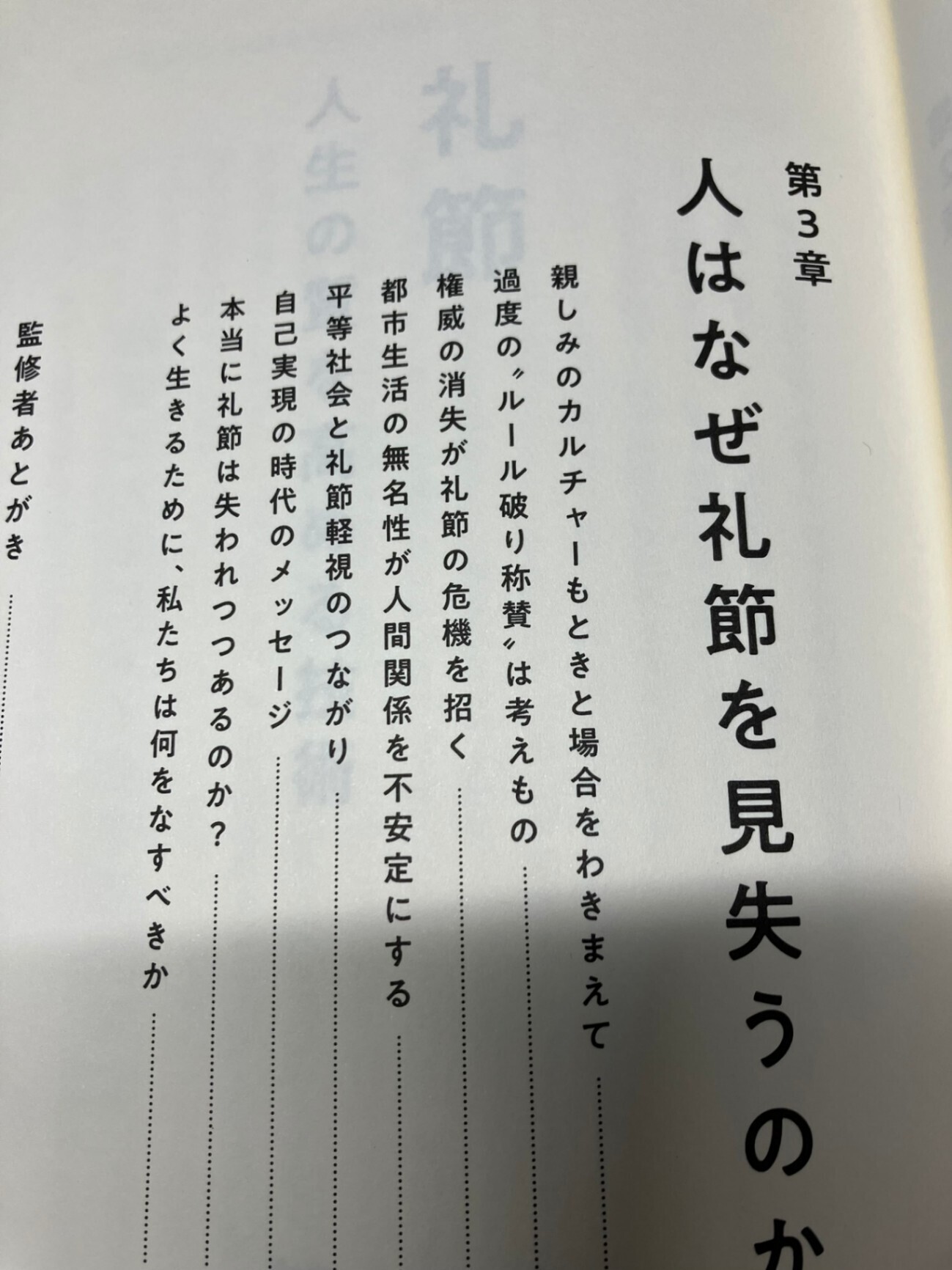 ・人生の質は「他者との関係の質」で決まり、そのカギとなるのが礼節=相手への敬意と善意あるふるまいであると位置づけ、礼儀正しさを「幸せと成功のインフラ」として捉え直している。