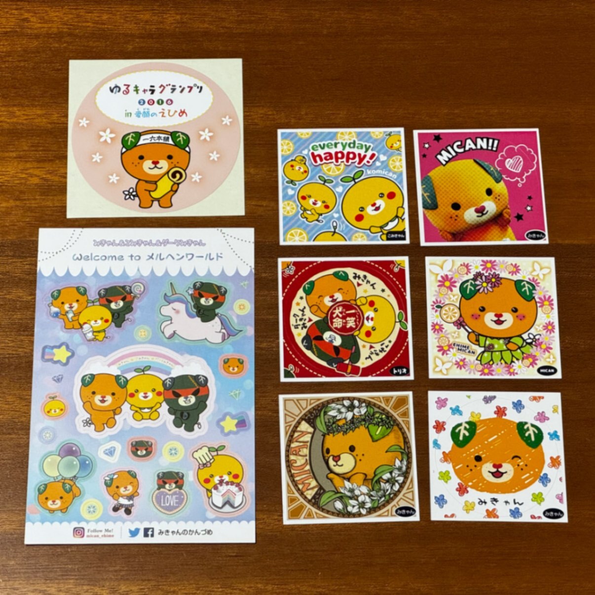 愛媛県のゆるキャラ「みきゃん」「ダークみきゃん」「こみきゃん」のシールセット。県内のイベントでいただいたものです。