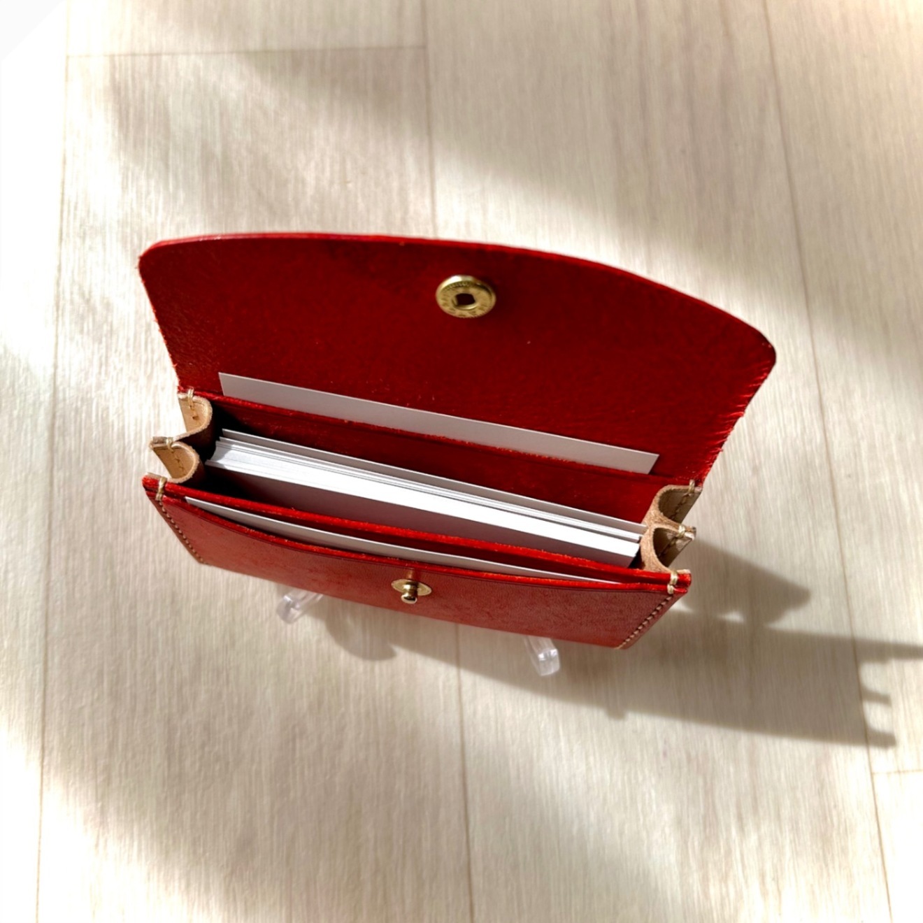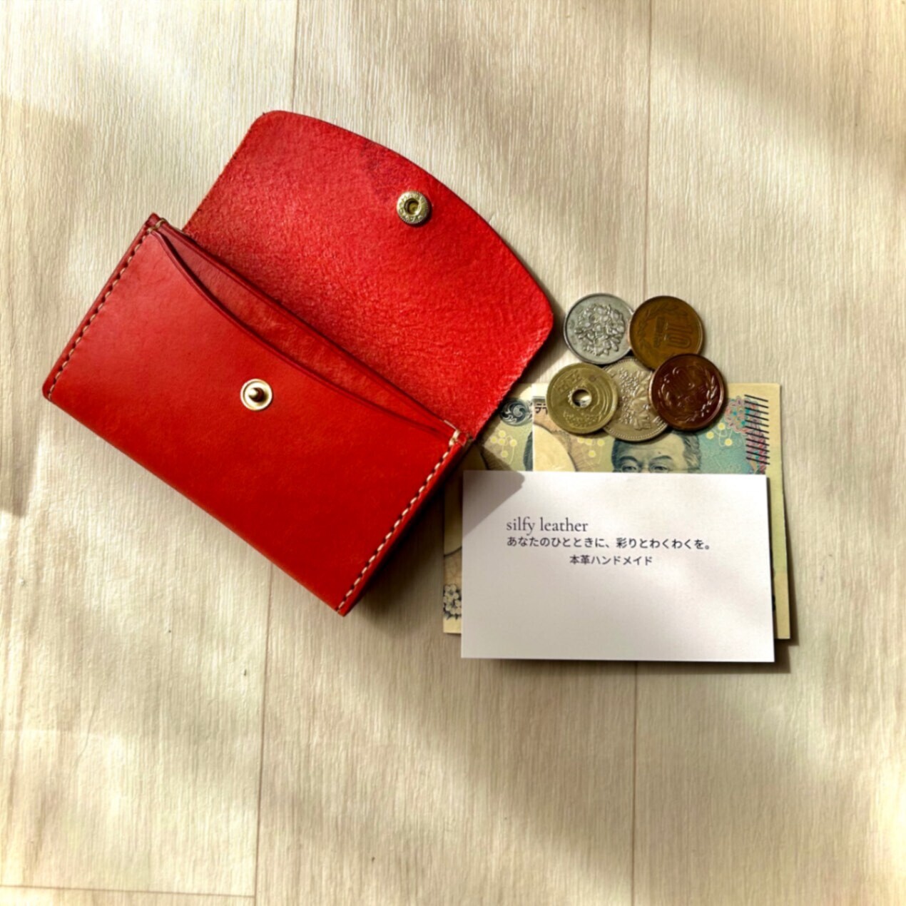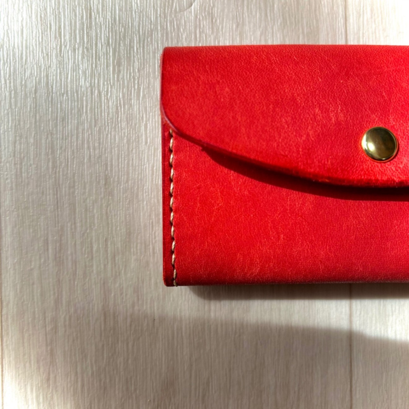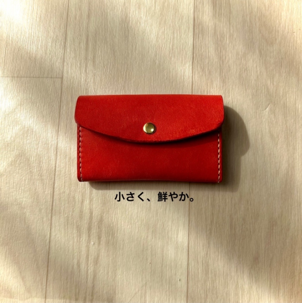 本革 ミニ財布・カードケース 赤|手縫い コンパクト財布(凛革シリーズ)