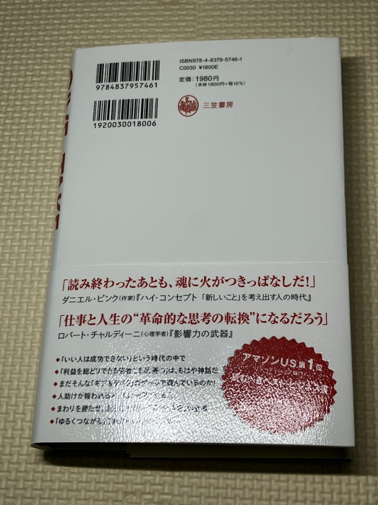 『ギブ・アンド・テイク』(アダム・グラント著)は、ビジネスや人生における「成功」と「人間関係」の本質を、3タイプ(ギバー、テイカー、マッチャー)の人間像を軸に解き明かす一冊です。