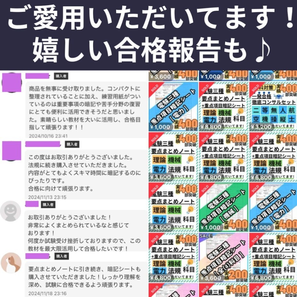 ★取引メッセージで試験についてのご質問承ります!