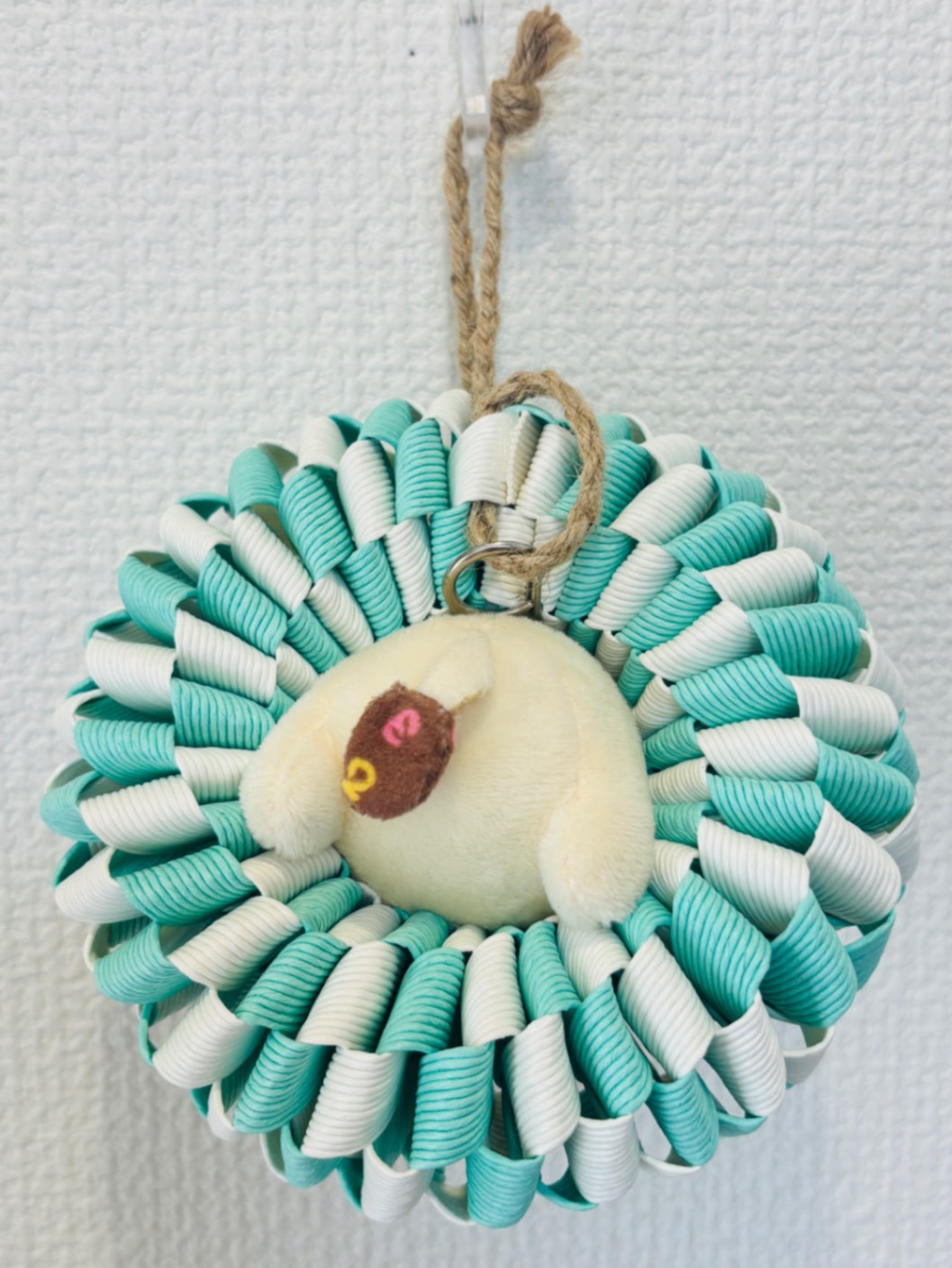 落下防止ガード付きなので、ぬいぐるみをはめた後にナスカンで麻紐に固定すると大切な学長ぬいぐるみを安心して飾れます🥰