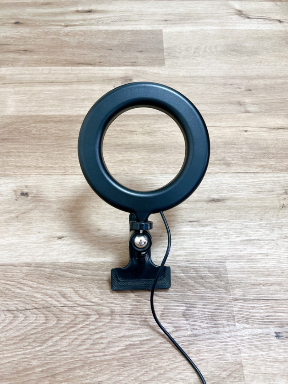 USB接続のリングライトで明るさ調整が可能。クリップ式マウントで取り付けも簡単。