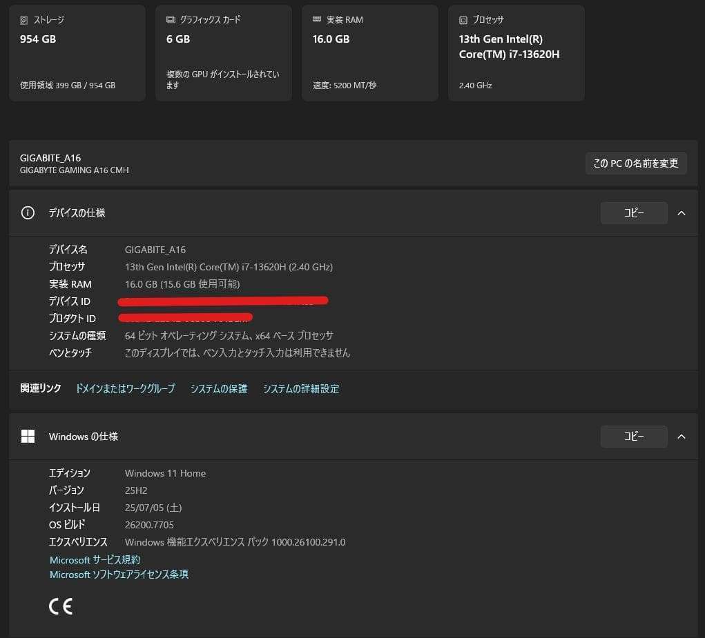 - モデル: GIGABYTE GAMING A16 CMHI2JP894SH