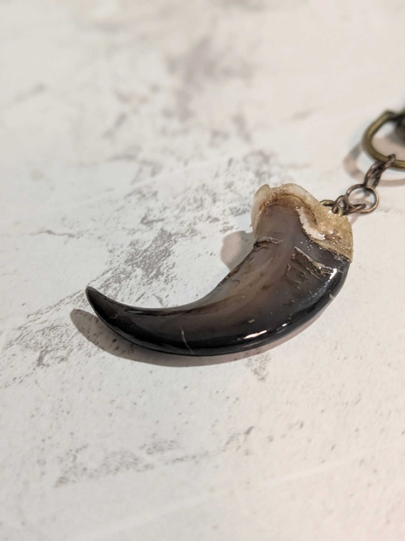熊の爪そのものの力強さを活かしたシンプルなキーホルダーに仕立てました。