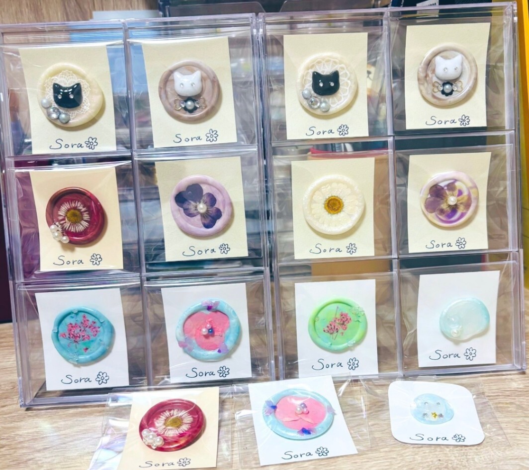 シーリングスタンプはワックスの垂らし方によって模様の出来方が違うので全く同じにはなりません。まさに一期一会の出会いです🌸