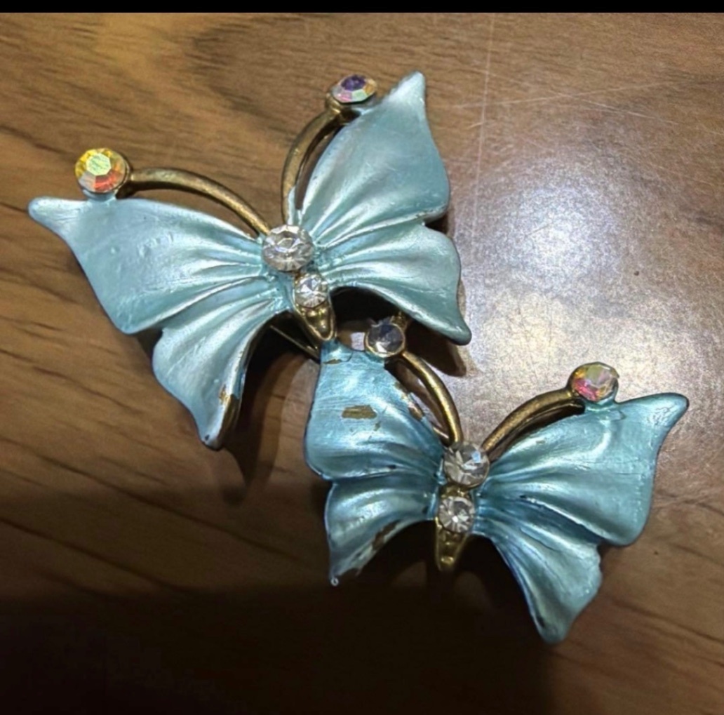 蝶モチーフ ブローチ ライトブルー レトロ風 ヴィンテージ調