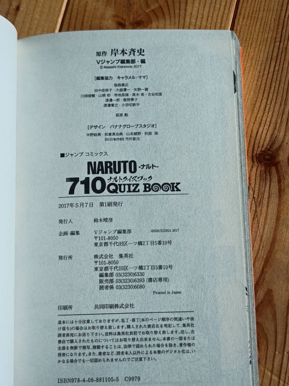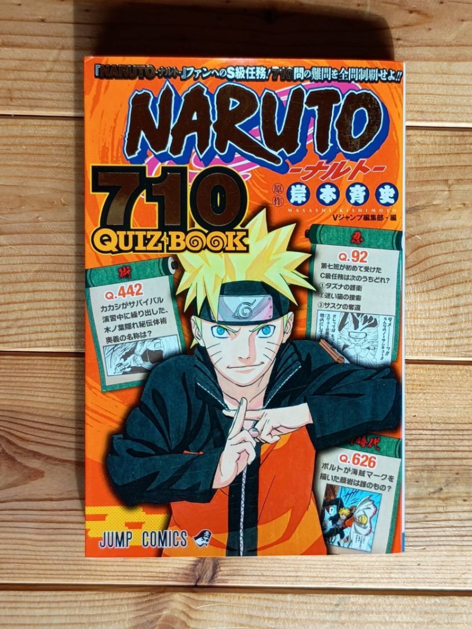 『NARUTO』に基づいた710問のクイズを収録した公式クイズブック「NARUTO―ナルト― 710QUIZ BOOK 」です。