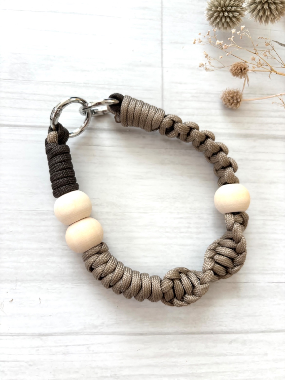 ウッドビーズ付きパラコードハンドストラップ(ベージュ)