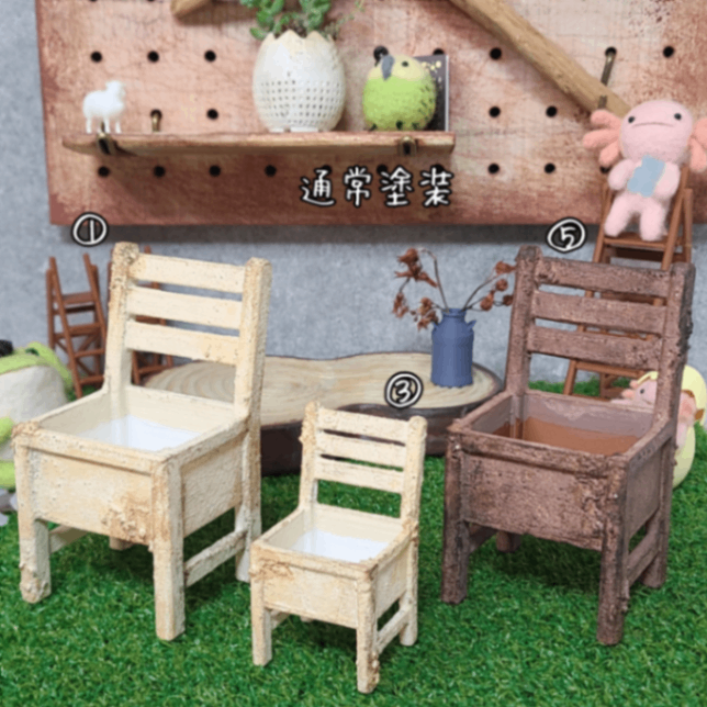 【④】レトロ椅子のリメイク鉢|④1.5号鉢相当・モルタル+塗装ブラウン〻3Dプリンター製