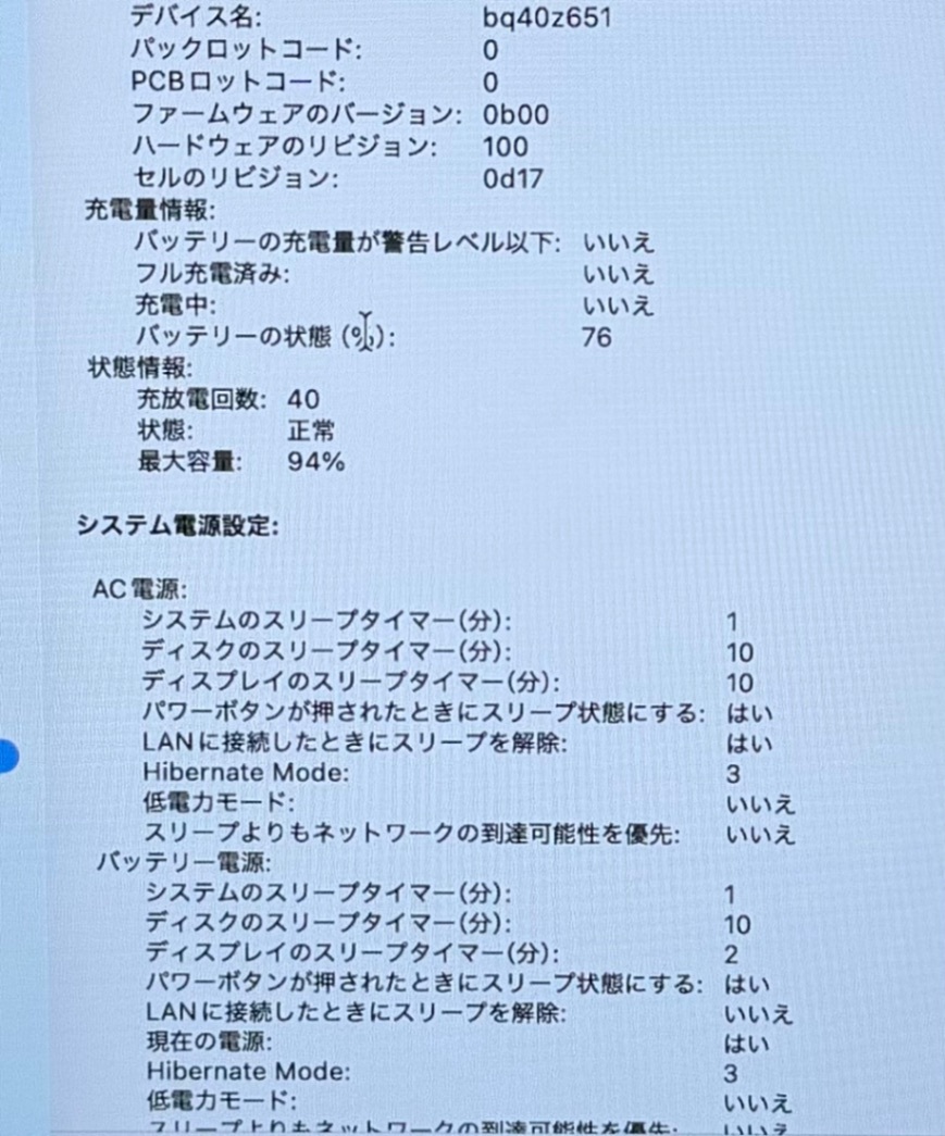 ・バッテリー最大容量:94%