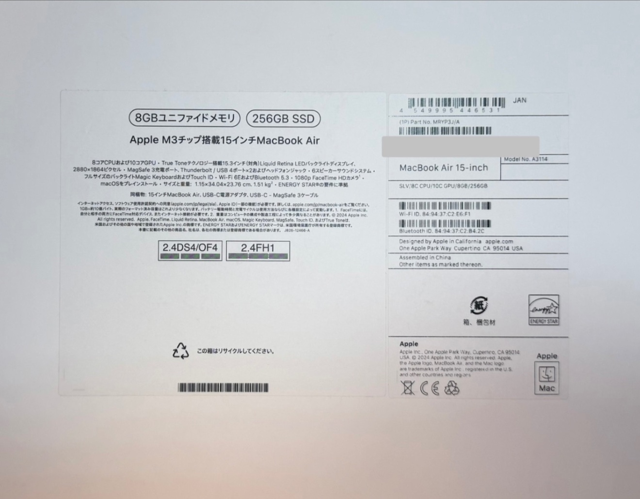 M3 MacBook Air(15.3インチ・シルバー)です。