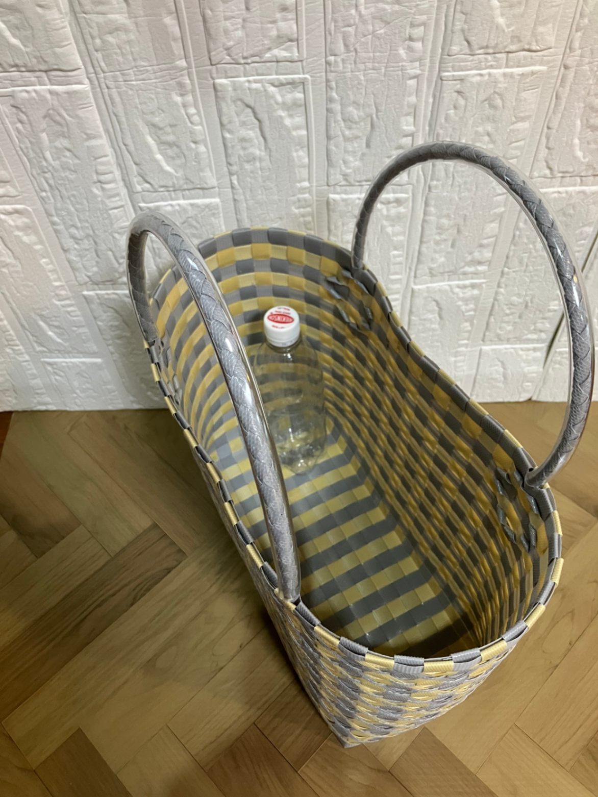 リボンのプラかごLサイズ グレー×ベージュ