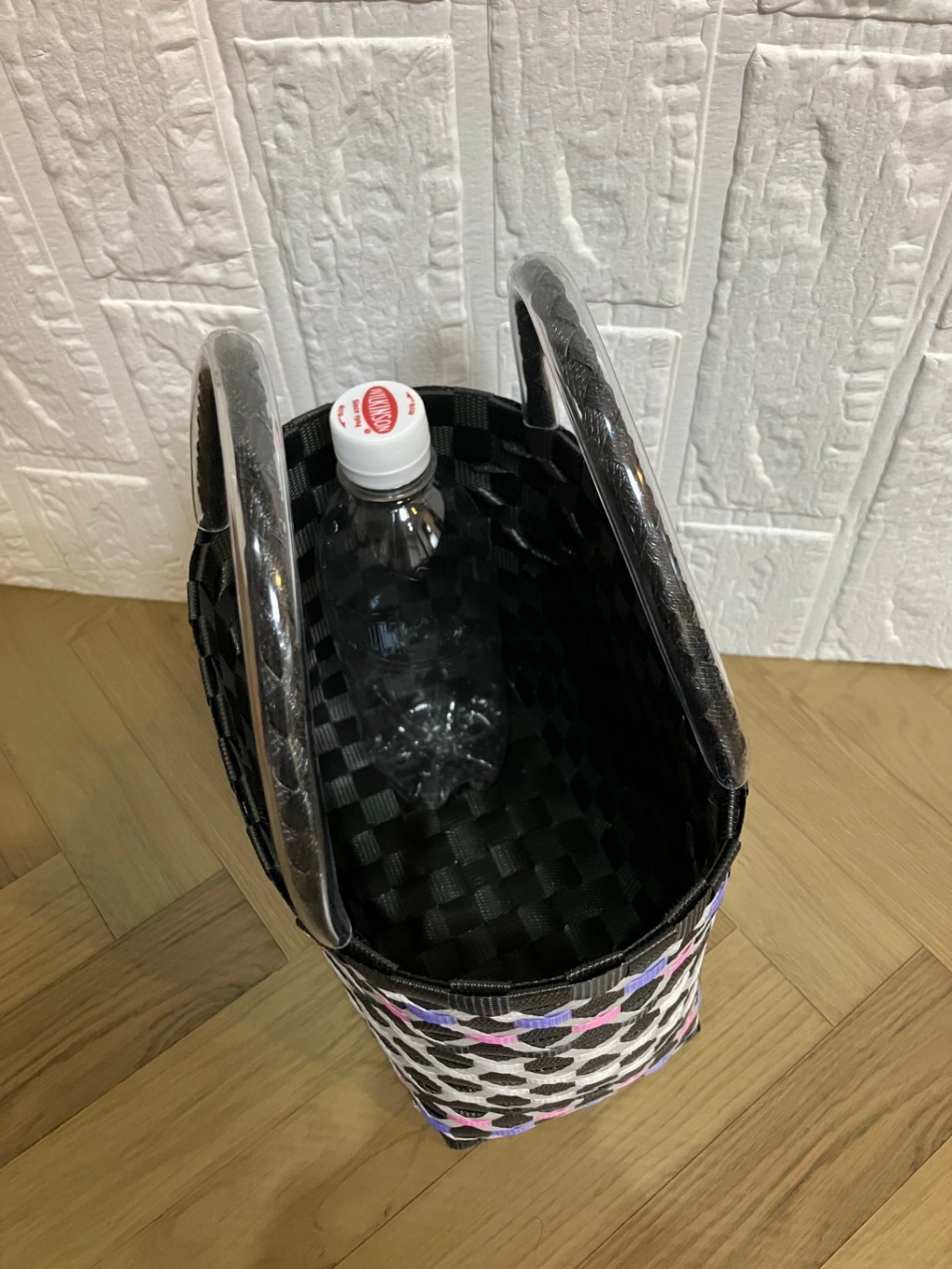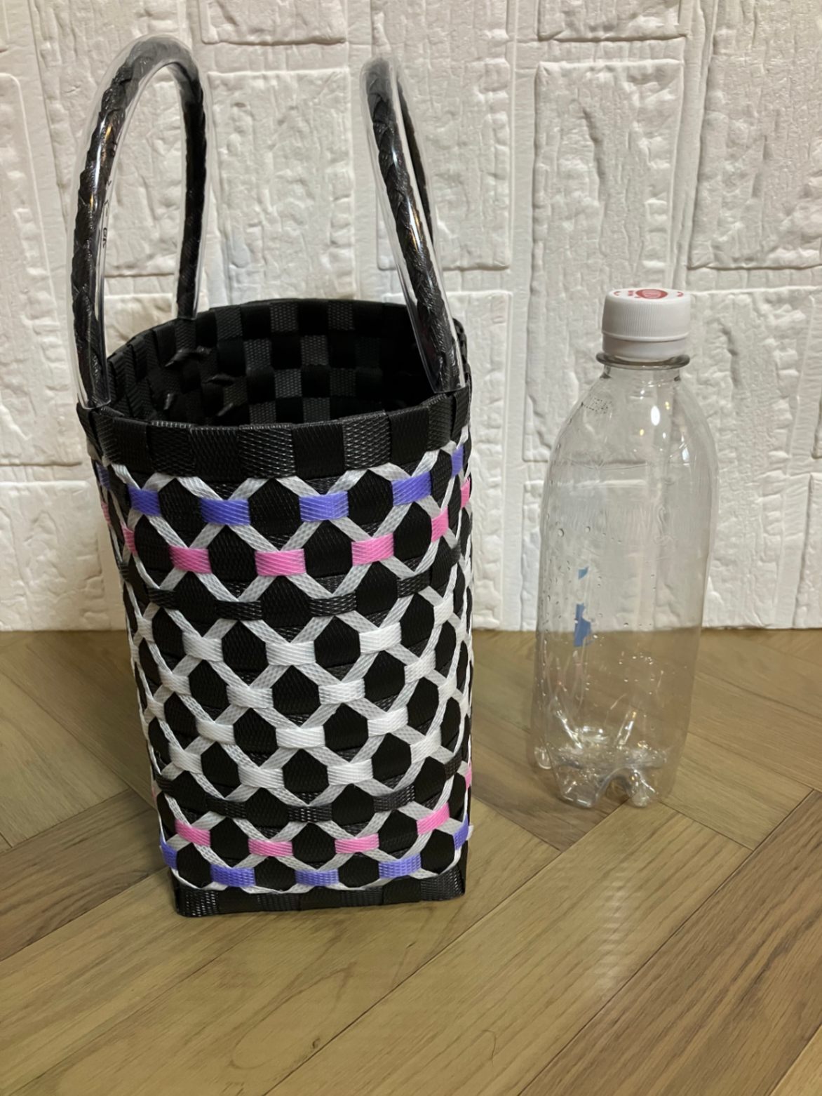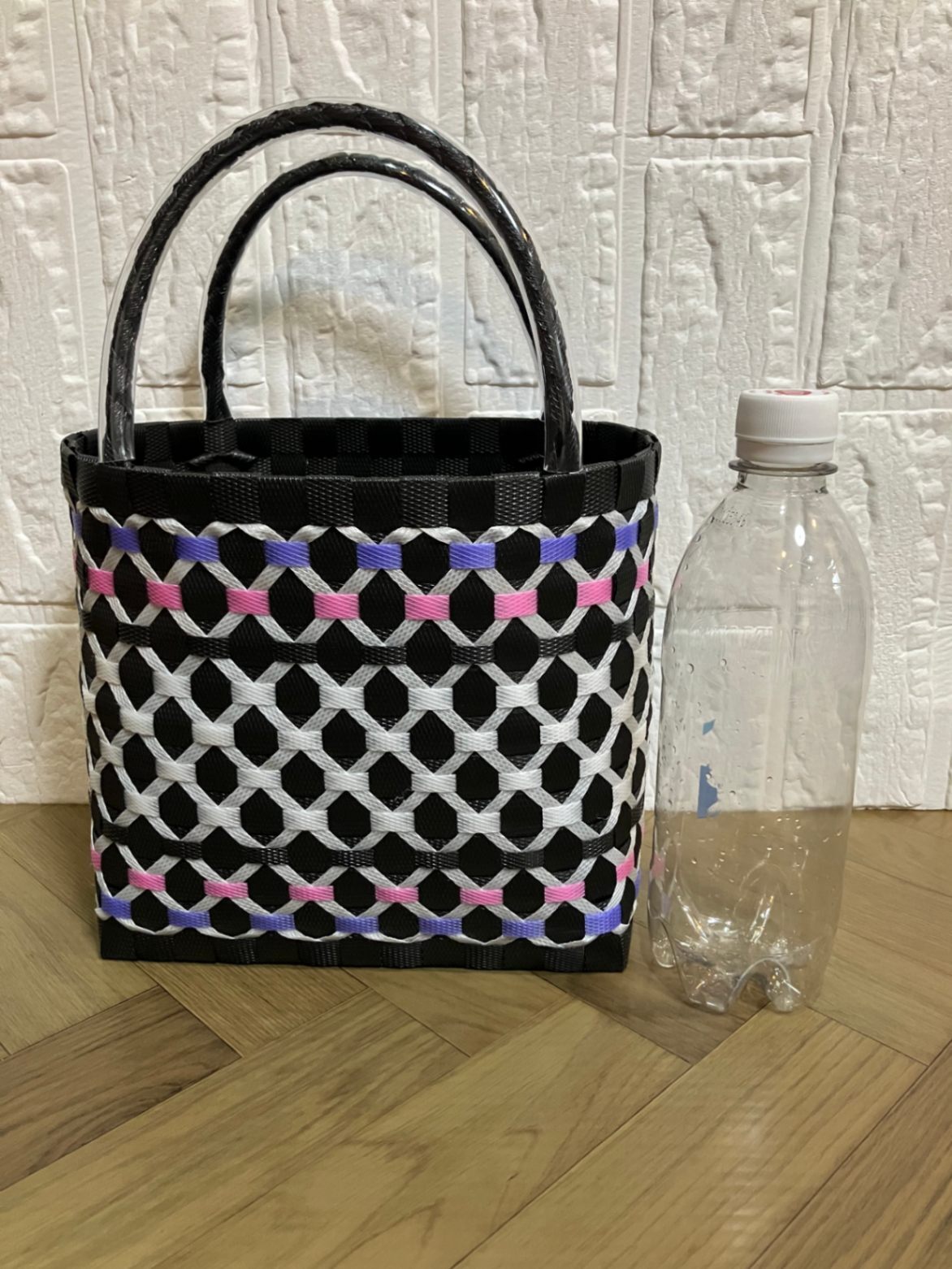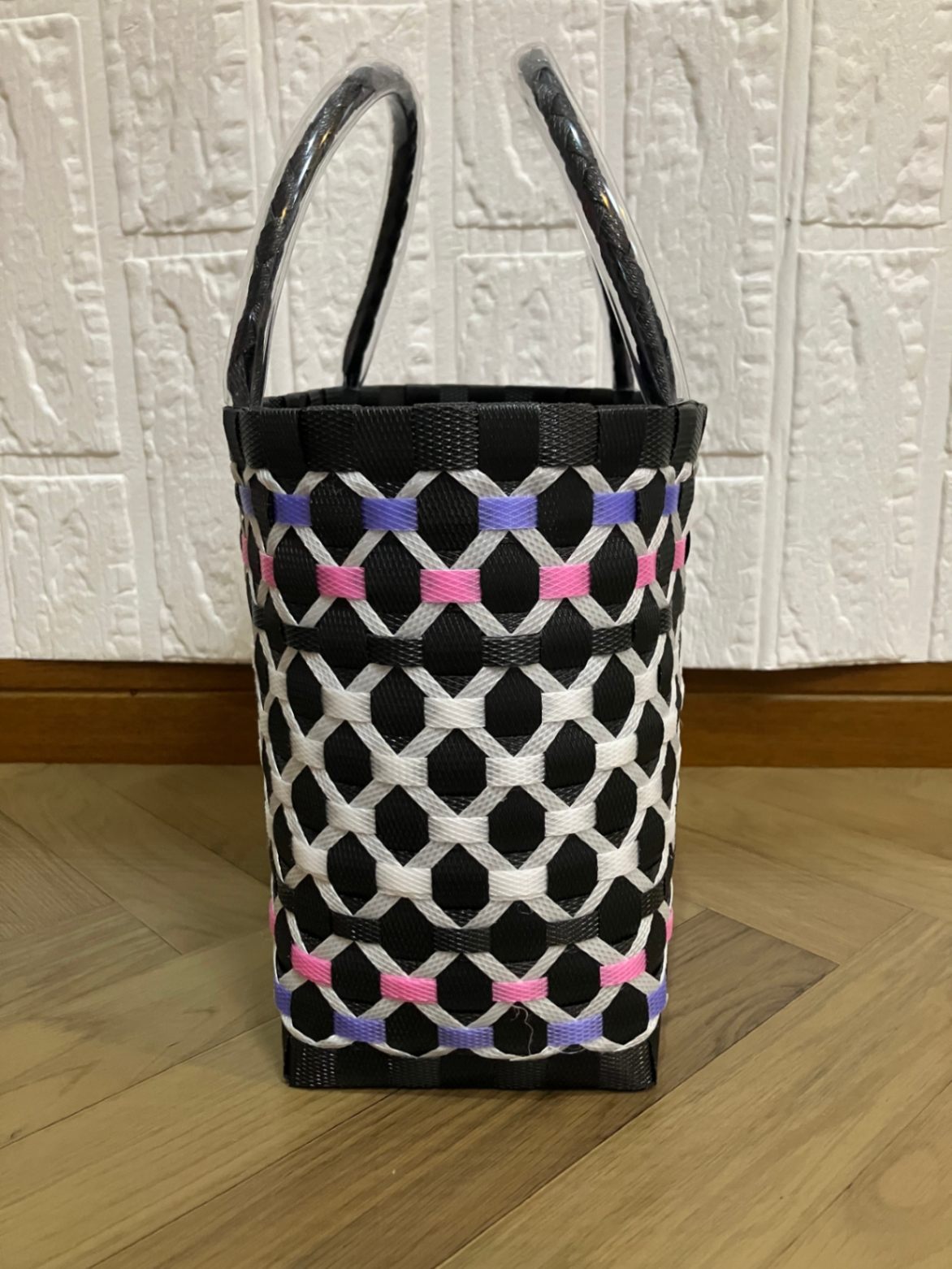 アジアン風プラかごSサイズ 黒×白×ピンク・紫