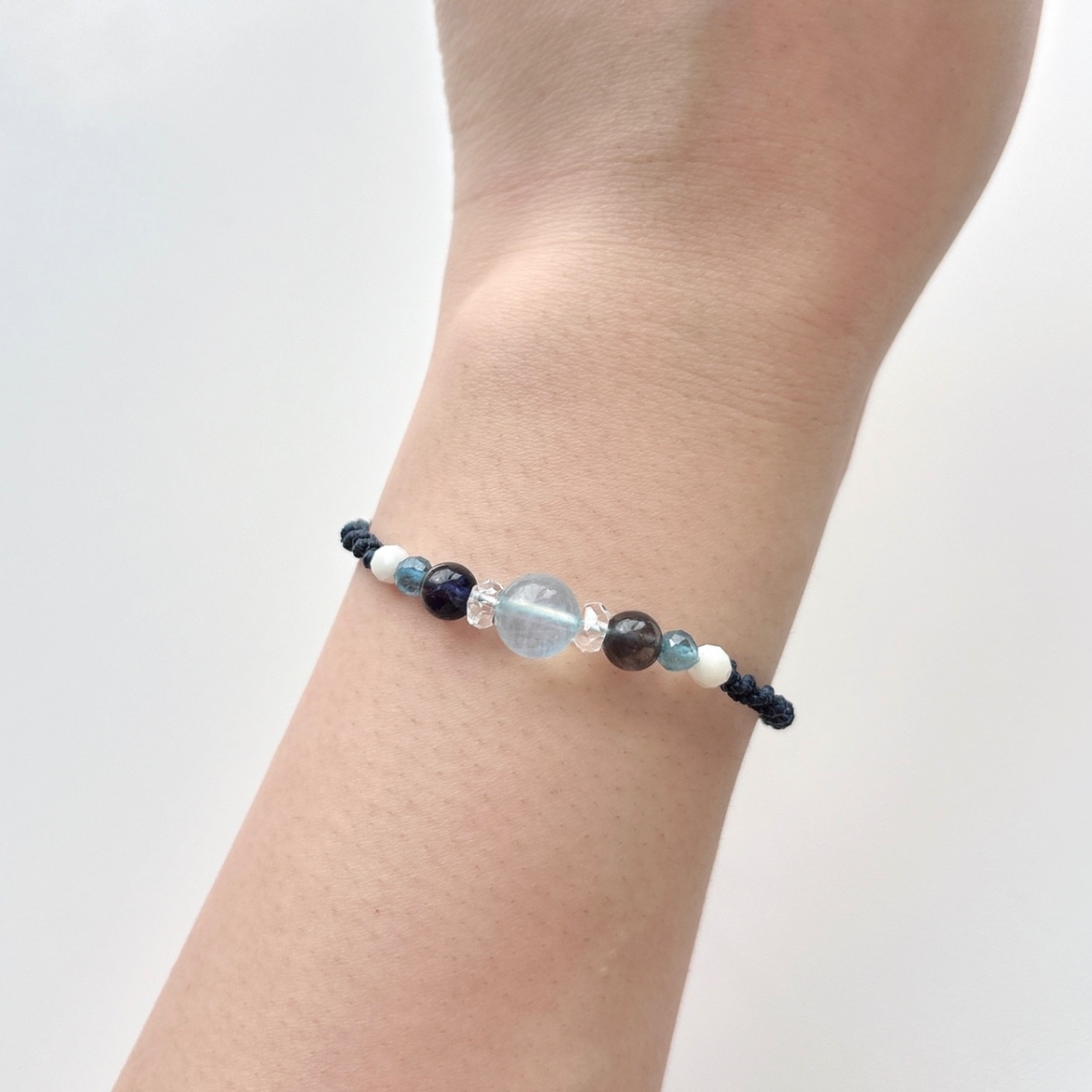【ハンドメイド】3月誕生石 アクアマリン アイオライト ホワイトコーラル 天然石 ブレスレット