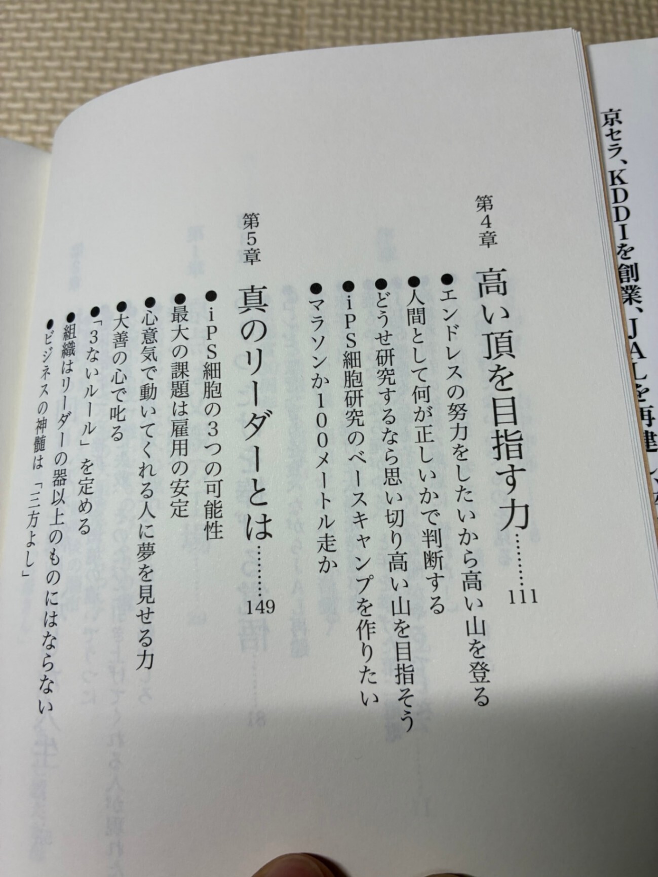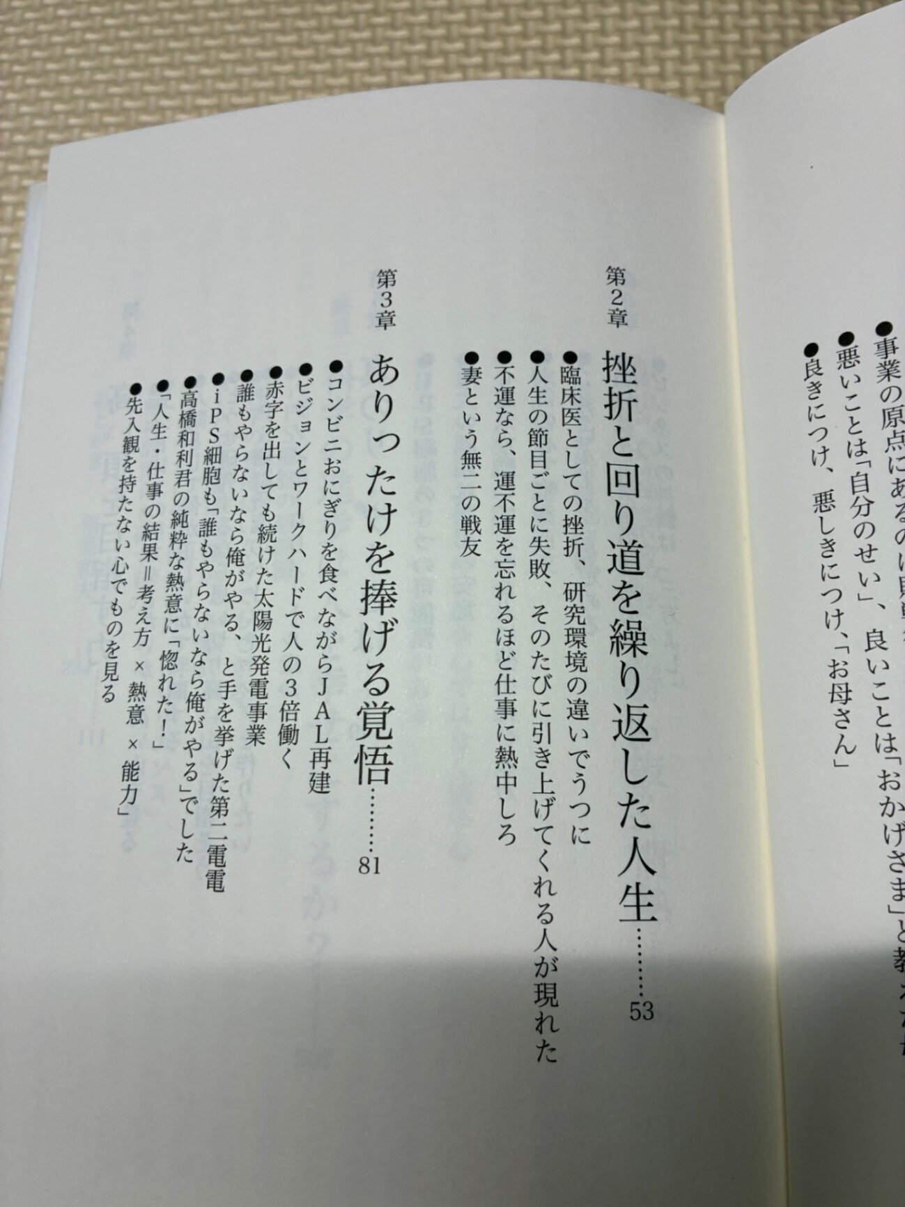 ・京セラ・KDDI創業やJAL再建を成し遂げた稲盛氏と、iPS細胞研究でノーベル賞を受賞した山中氏が、それぞれの挫折や失敗体験を赤裸々に語り、「成功の原点は失敗と辛抱にある」と強調している。
