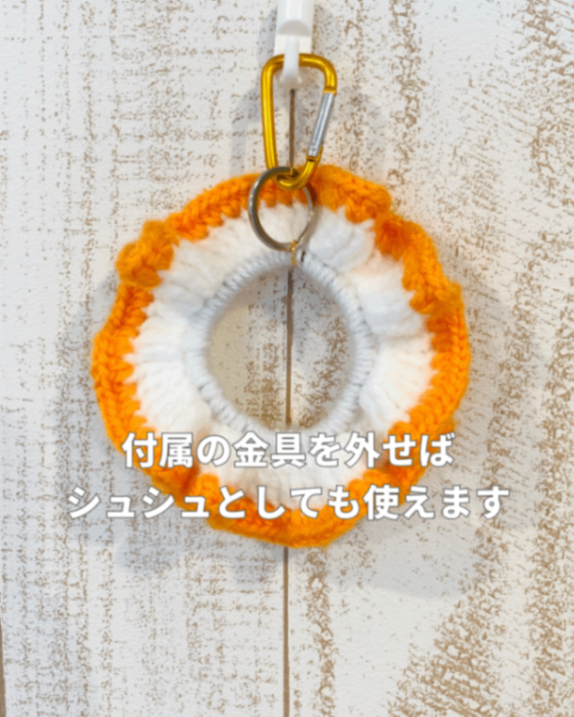 作品は髪留め用のシュシュを応用しています。