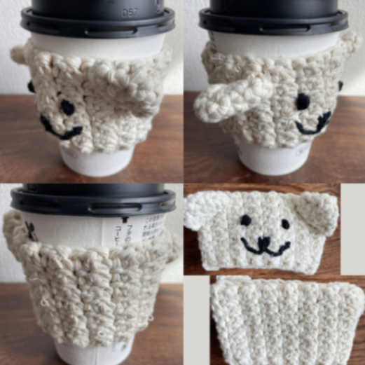 【ハンドメイド】コンビニMサイズ対応♪ コーヒー迷子を防ぐ「わんちゃん」スリーブ(コットン100%)