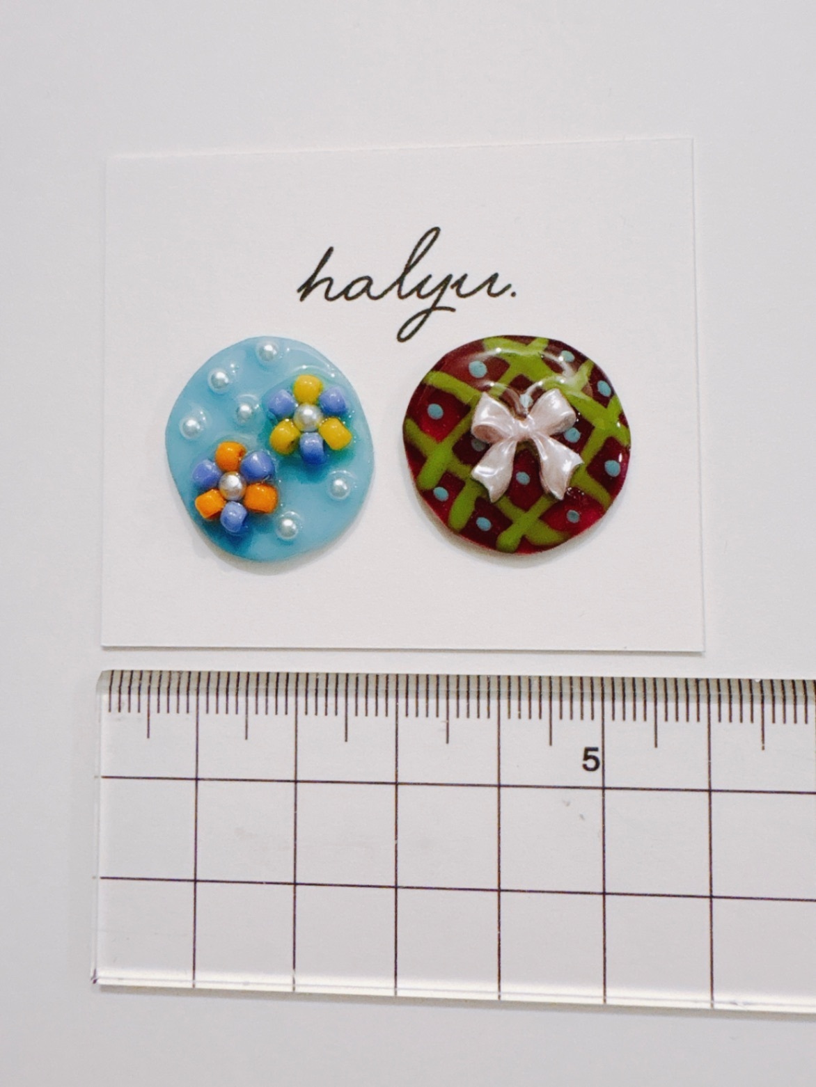 ハンドメイド【ピアス・イヤリング・ピンバッチ】カラフル ポップ 個性的