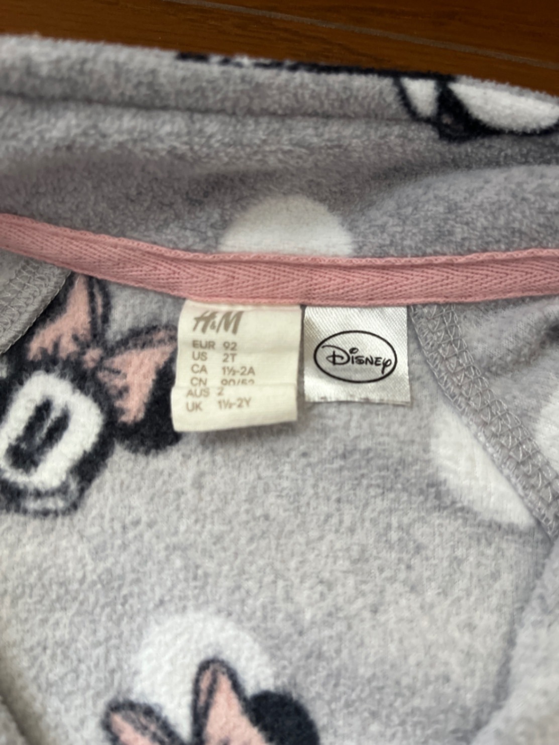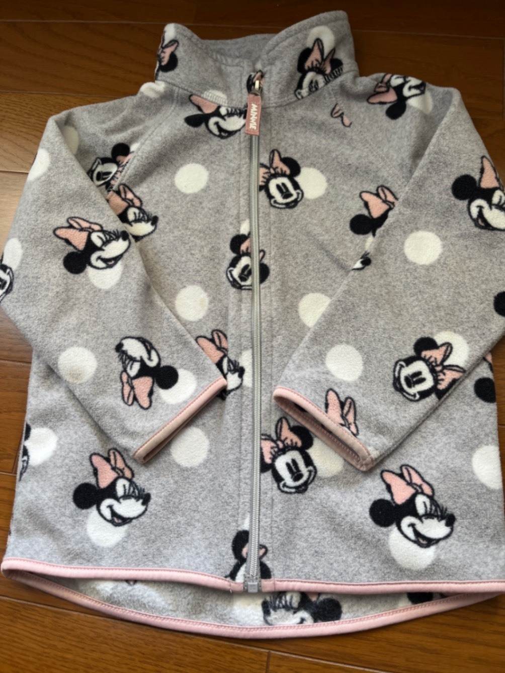身長90cm用のディズニーのミニーの絵が入ったフリースです。サイズアウトしたため、出品します。