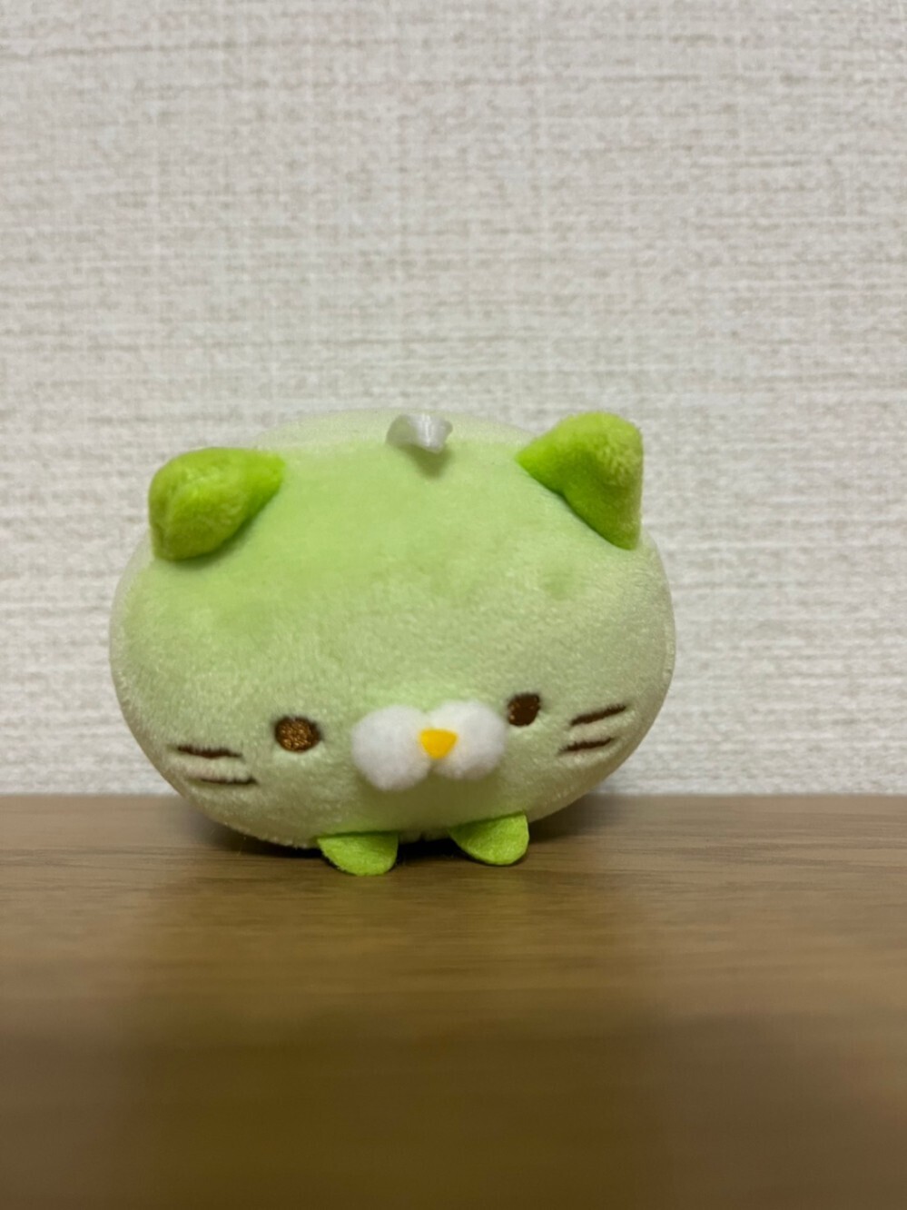緑の猫のぬいぐるみです。