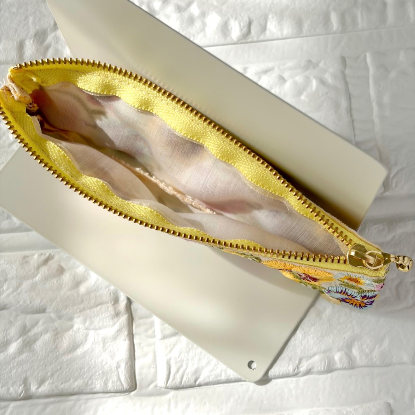 裏地はオーガンジー風の生地を使用。刺繍のほつれの心配なく活用できます。