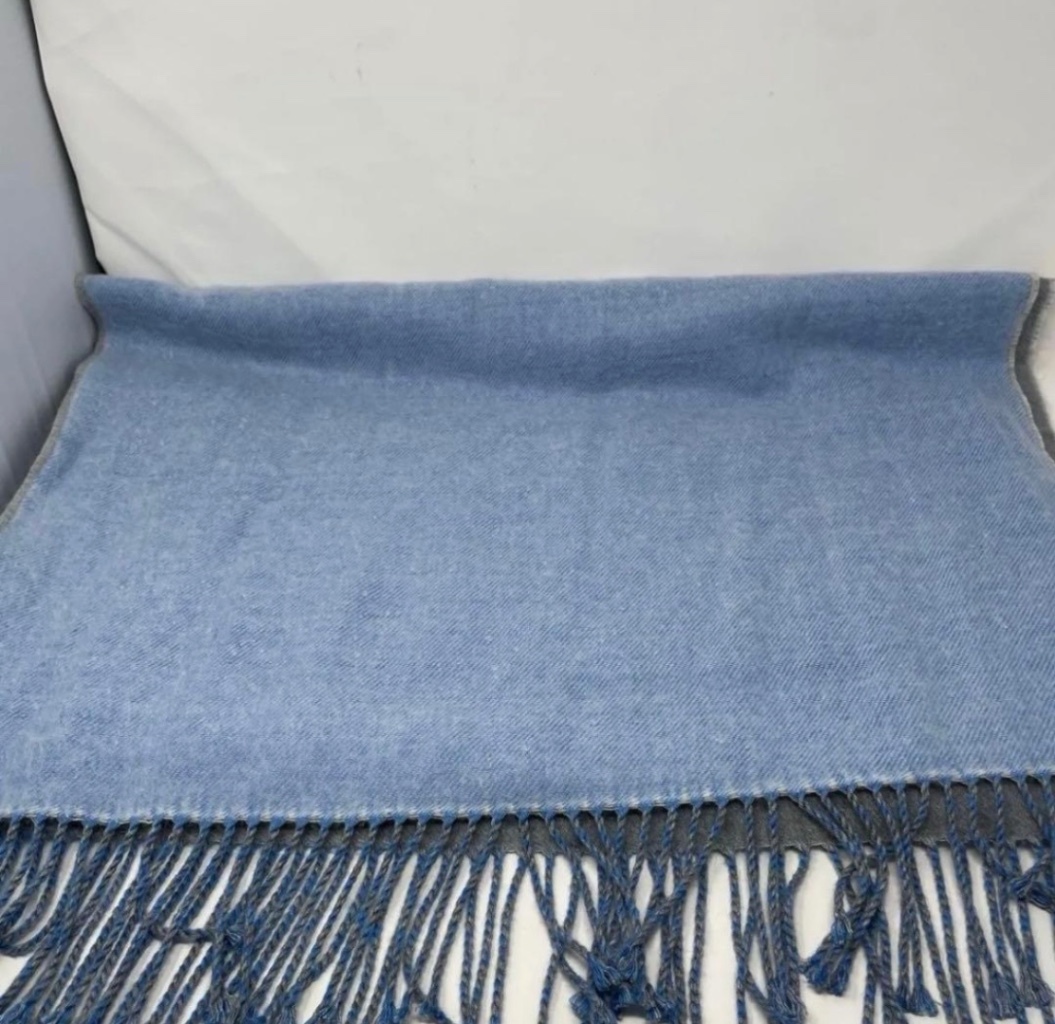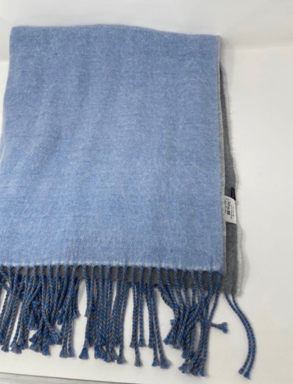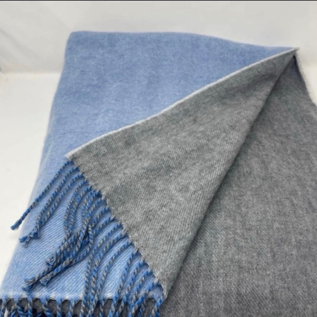 INDIVI インディヴィ ストールリバーシブル ブルー×グレー フリンジ 美品