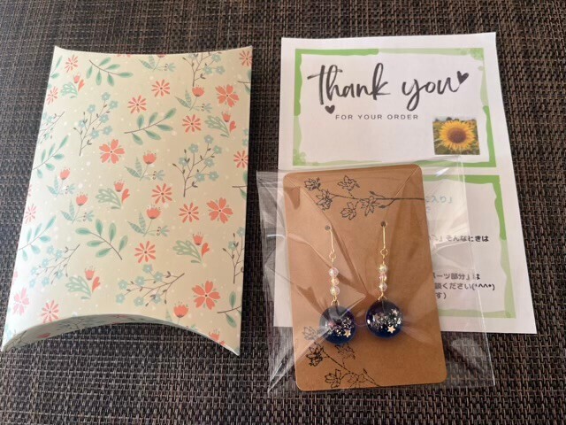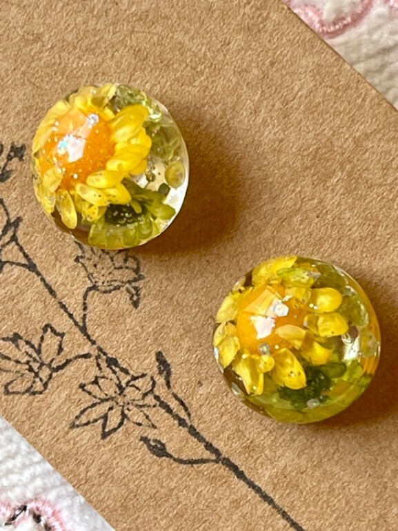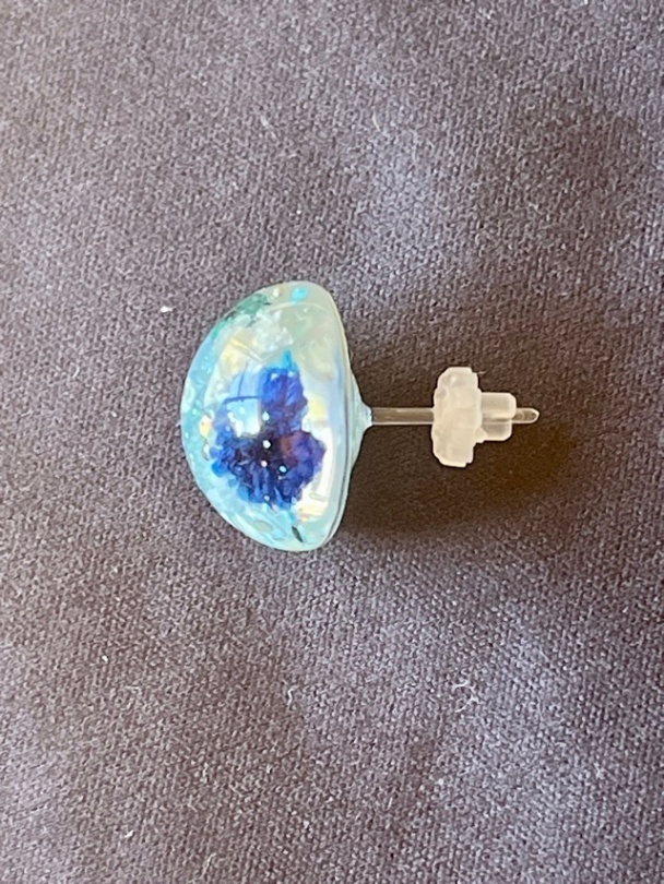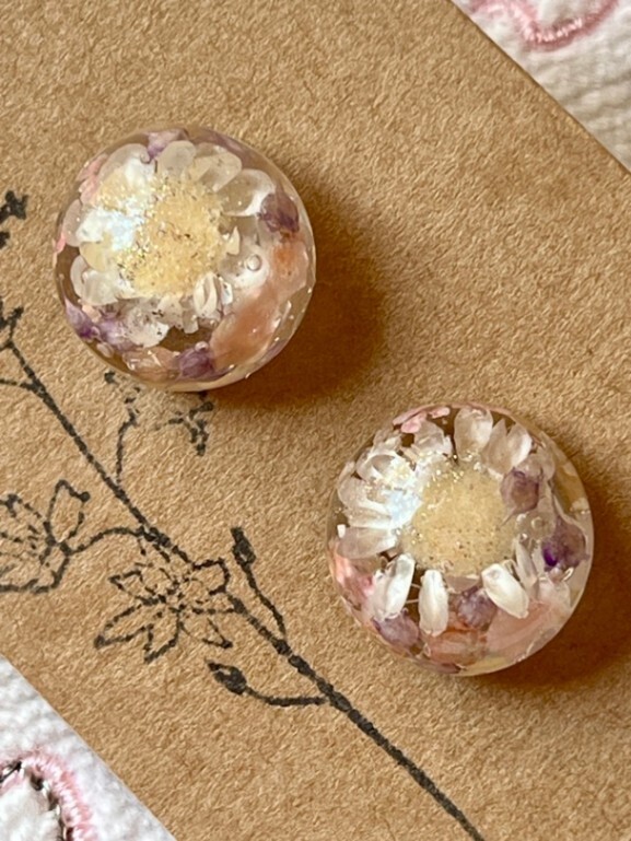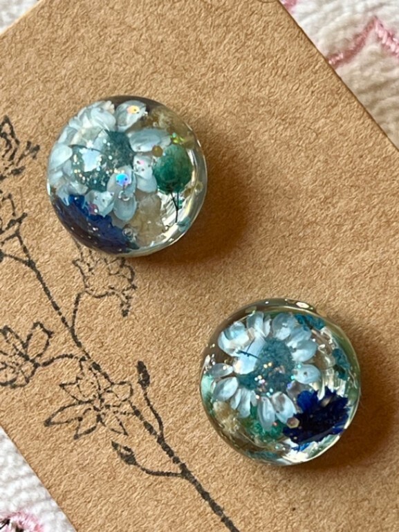 こちらのドライフラワーを入れた小粒のピアス、ご好評いただいてます