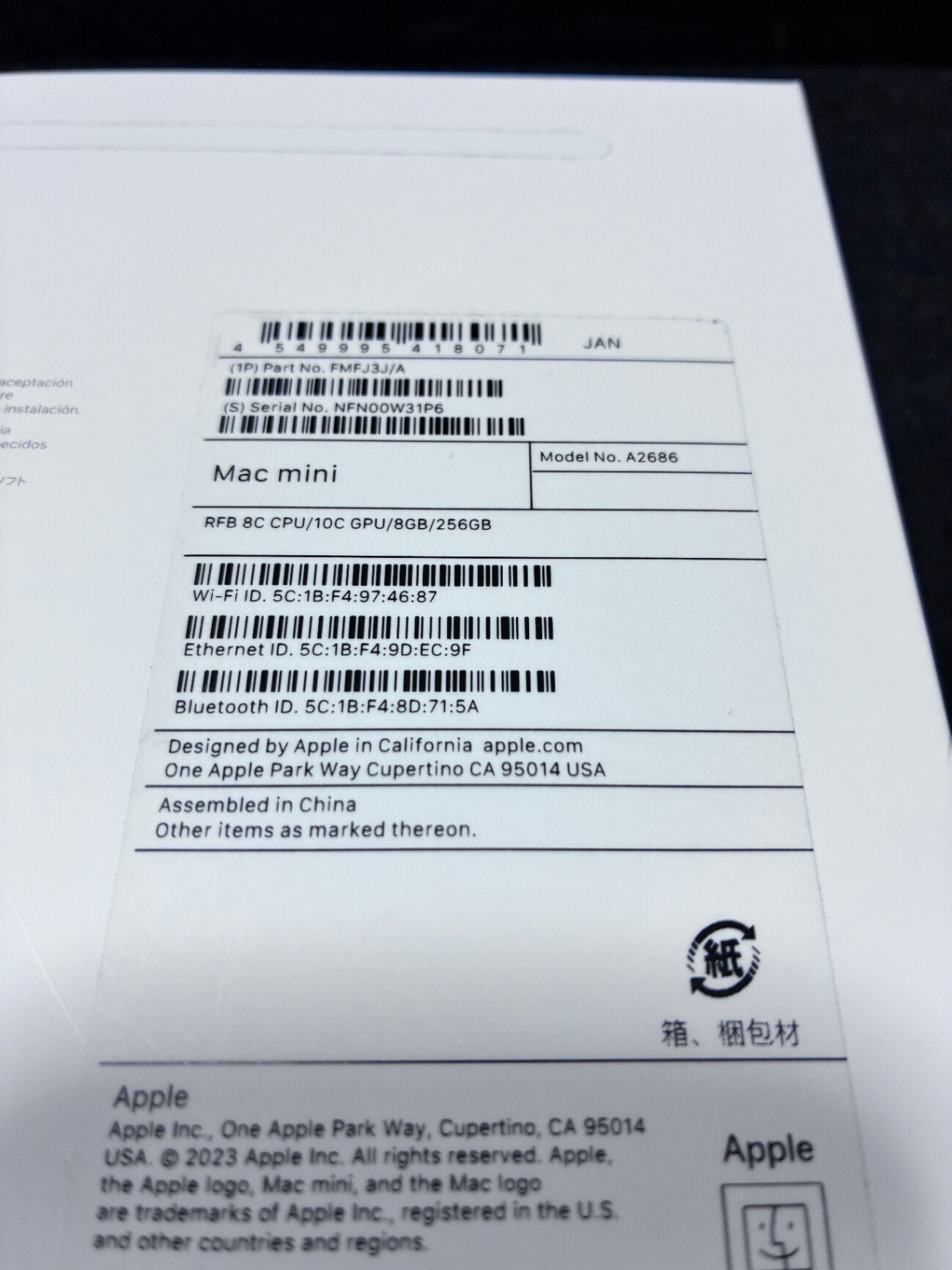Mac mini M2チップ メモリ8GB SSD256GB