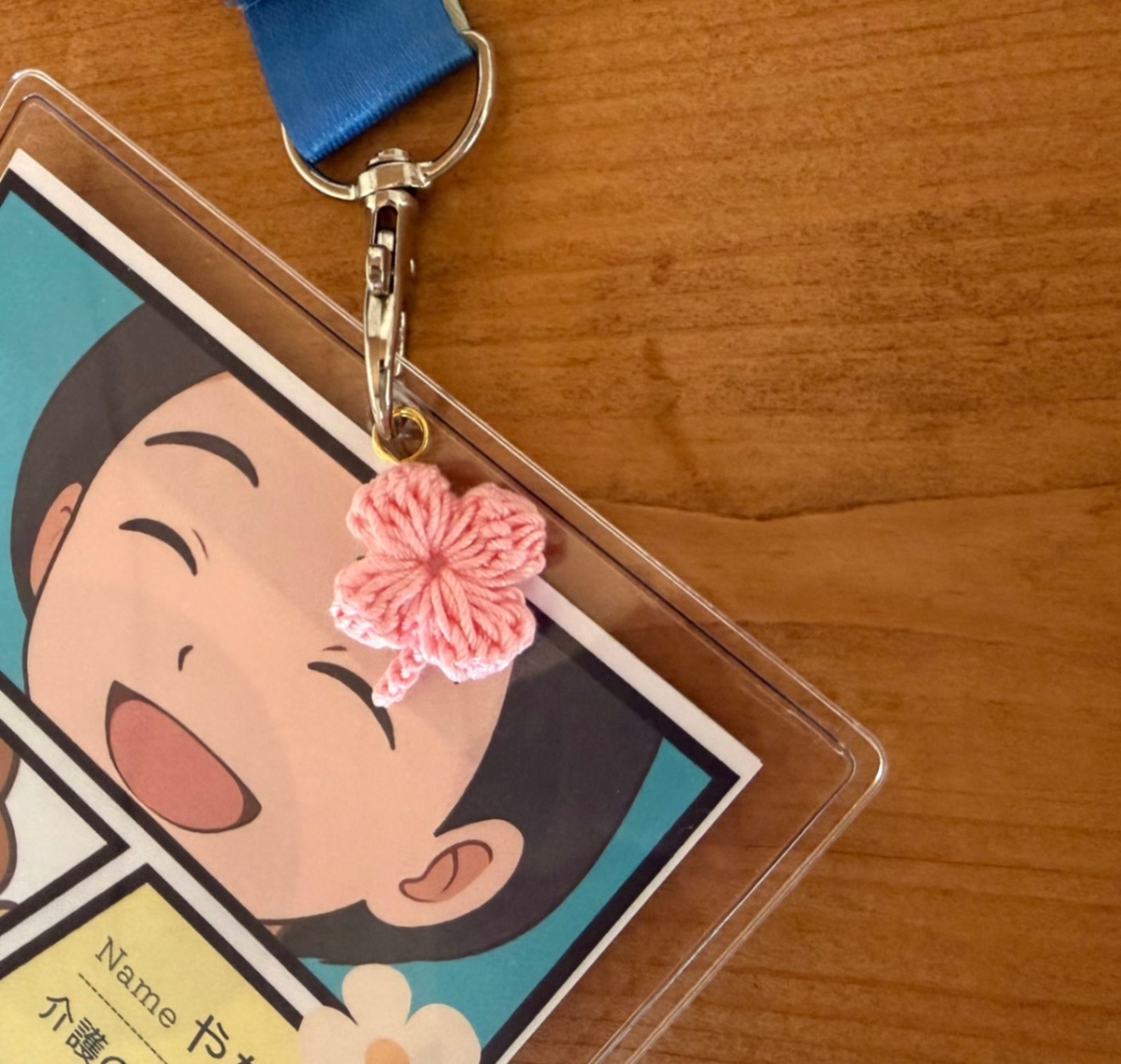【手編みモチーフ🍀】🦁名札やミニライオンちゃん、お好きなアクセサリーに♪ピンクの四つ葉モチーフ♡