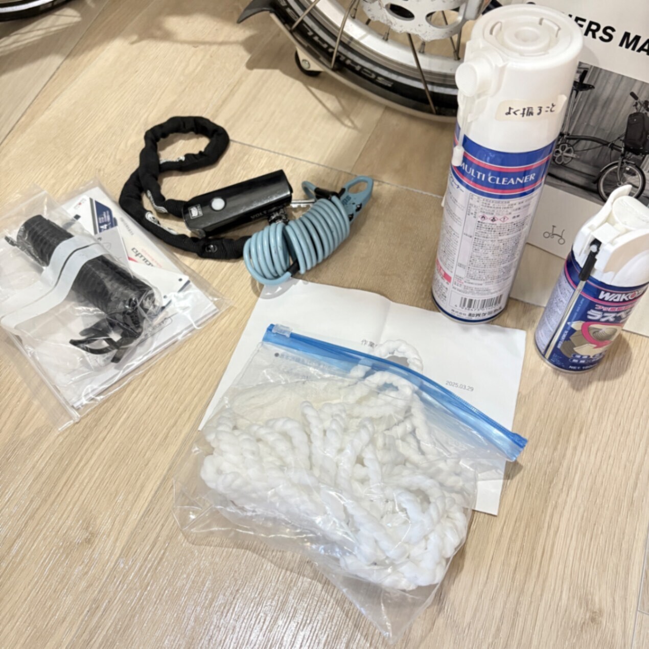 チェーン油など清掃用品も購入したものの、結局お店で点検時にやってもらっていましたので、使用したのは数回です。