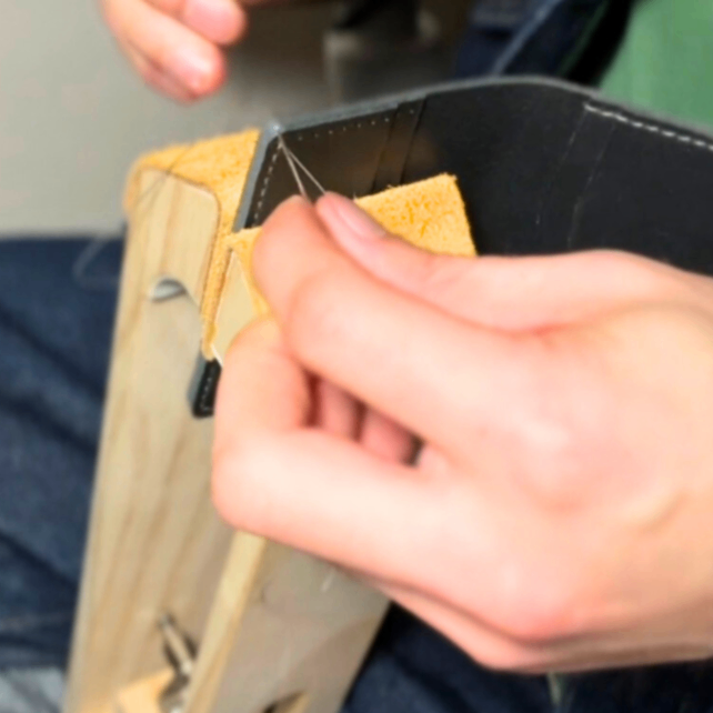 一つひとつ手作業で仕立てています。できる限り丁寧に製作しておりますが、ミリ単位の個体差や微細な跡が見られる場合があります。