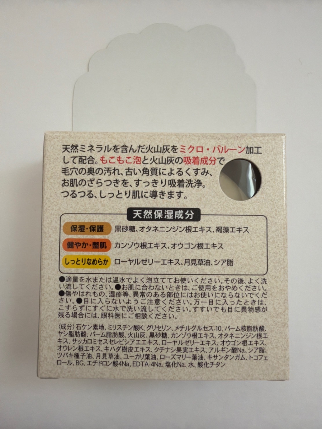 ミネラル豊富な火山灰配合のせっけんで、豊かな泡立ちと自然な香りが特徴です。