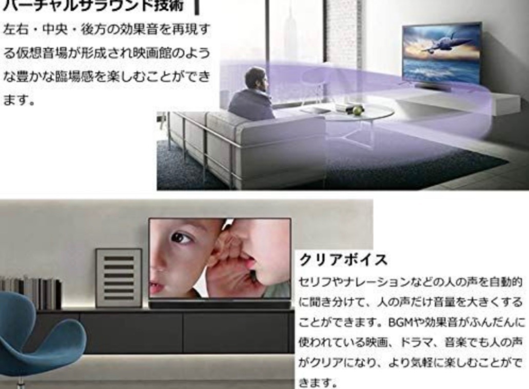 YAMAHA SR-C20 サウンドバー、ブラック、3.1kgのコンパクトデザインで高音質を実現。