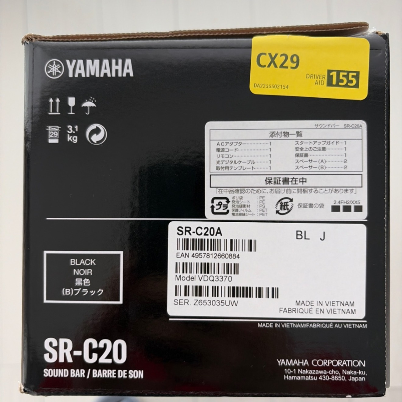YAMAHA SR-C20 サウンドバー ブラック