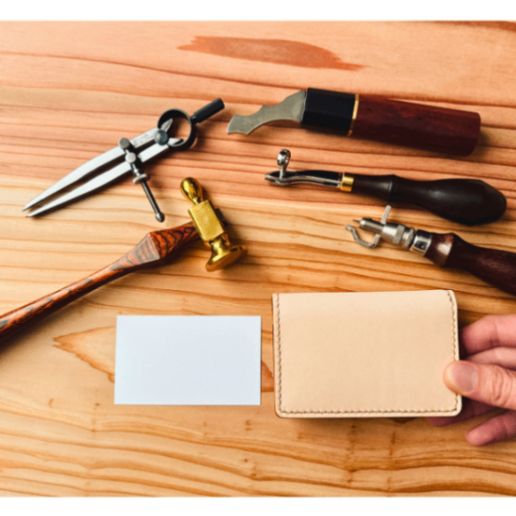 国産ヌメ革の淡い肌色が、落ち着いた顔をしてる。主張しすぎない。