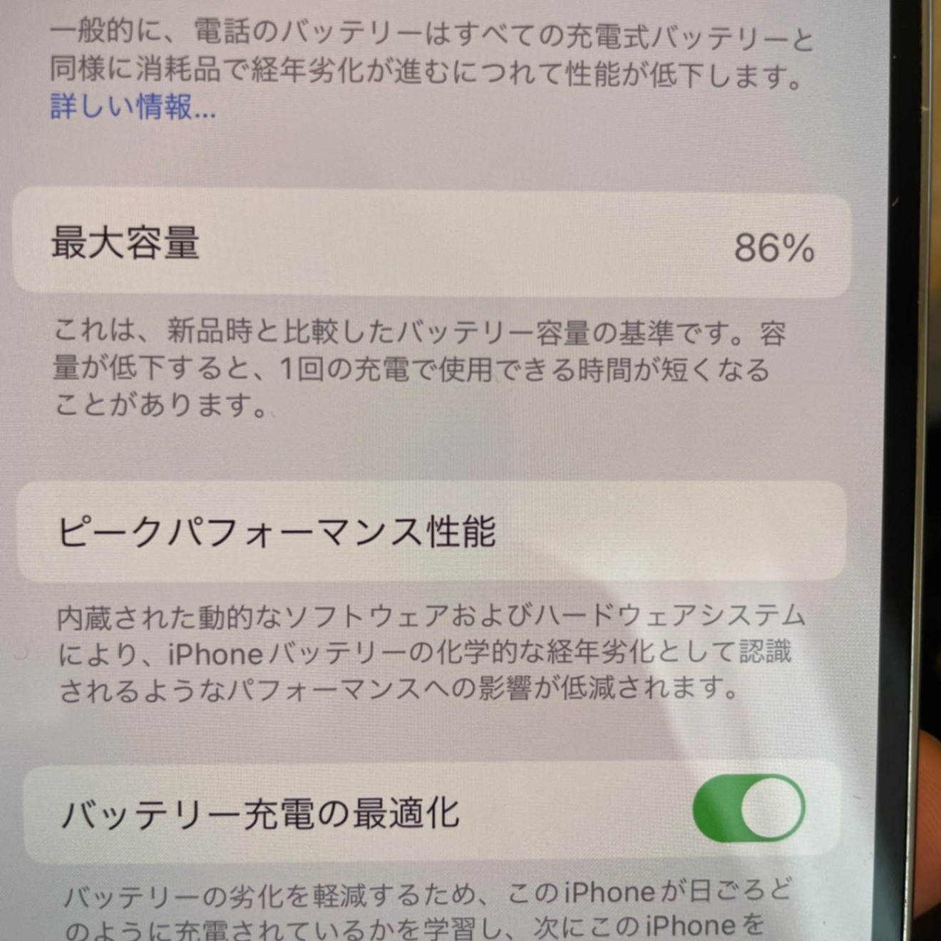 バッテリー最大容量···85~89%