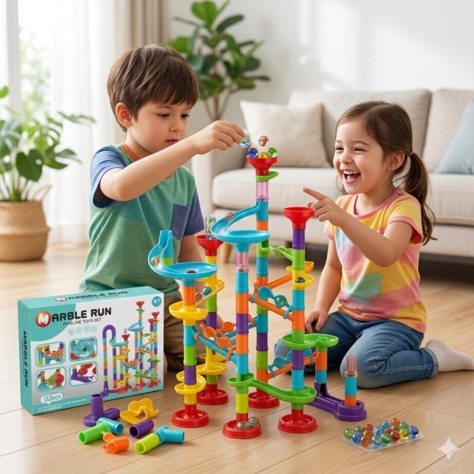 マーブルラン 知育玩具 80ピース(玉1個含む)説明書付き