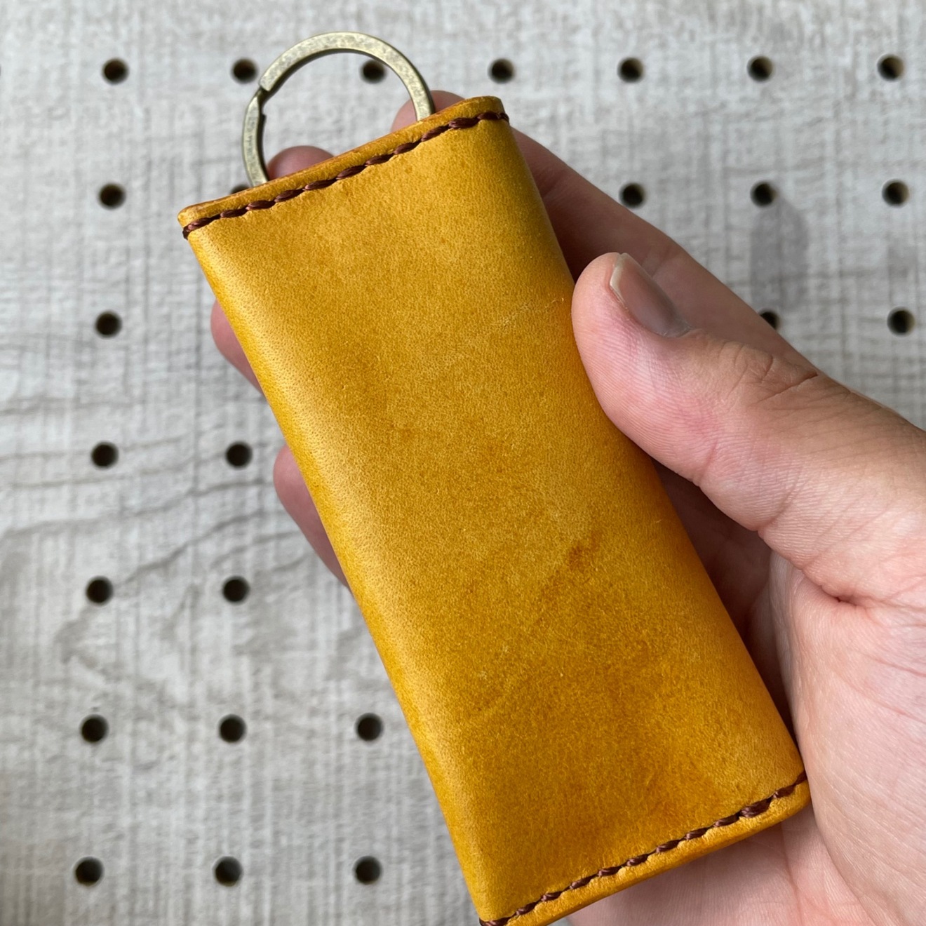 こちらのコインケースは、その小ささとデザイン性にあります。4つ折りの紙幣がちょうど収まるサイズでありながら、鍵をつけてもかさばらない、機能的なデザインにしています。