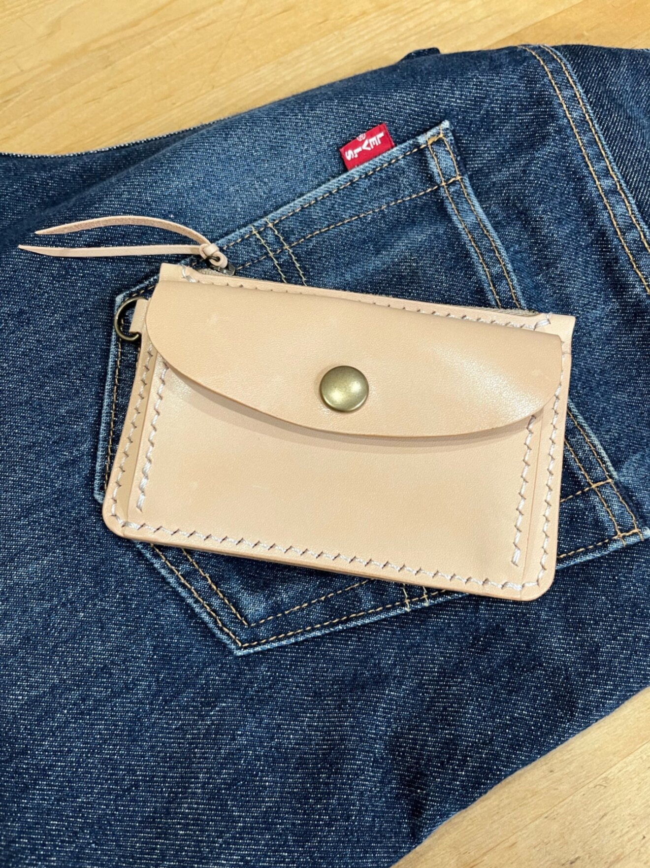 ヌメ革(本革)で作ったコンパクトウォレットです。