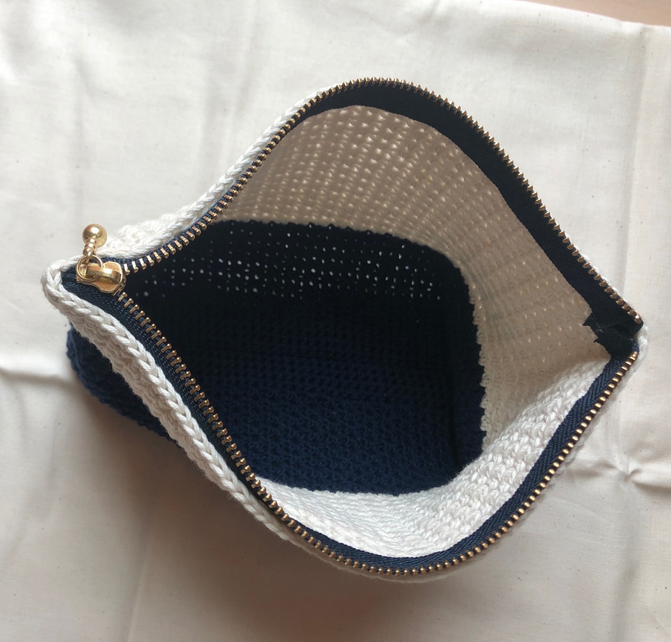 ホワイトとネイビーの2色が可愛い毛糸ポーチです。